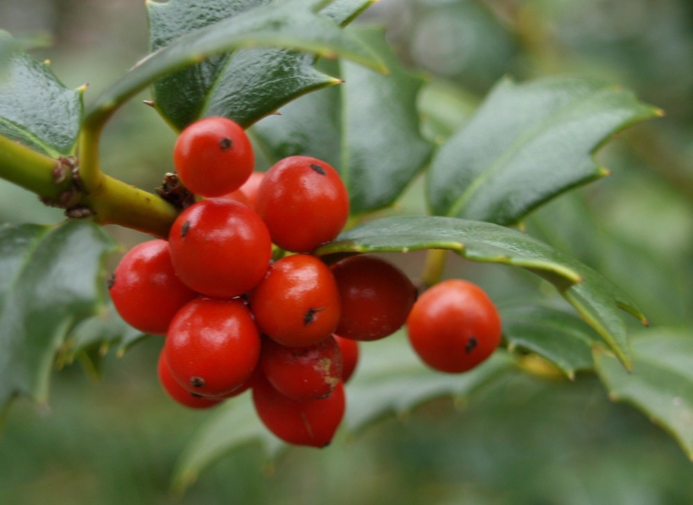 Instead of leaves I see houses in the distance, the last of the blazing orange Japanese maples were stripped in the wind and rain earlier in the week. Wet leaves are ankle-deep in the garden, and I bemoan the drab winter ahead with the red berries of hollies (below) and nandinas the only bright colors.