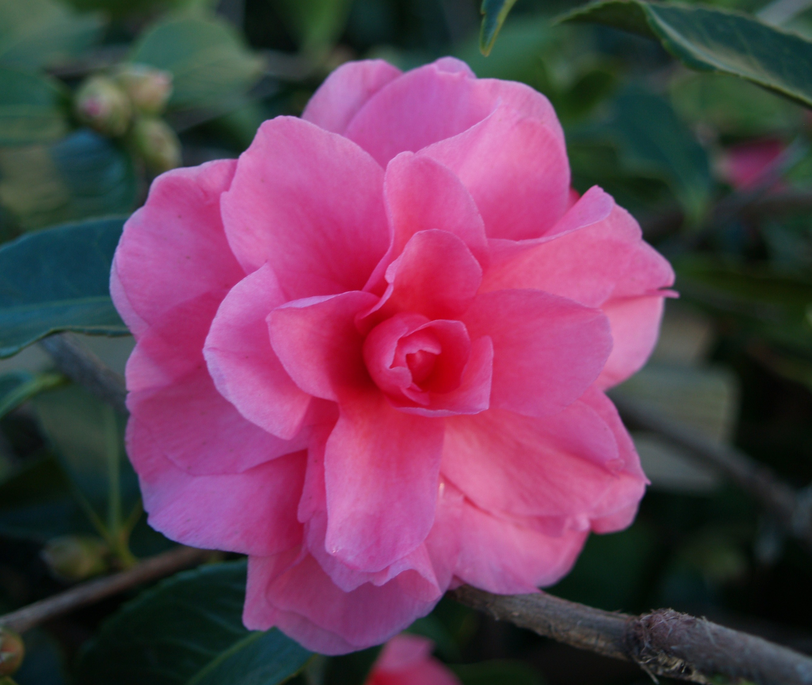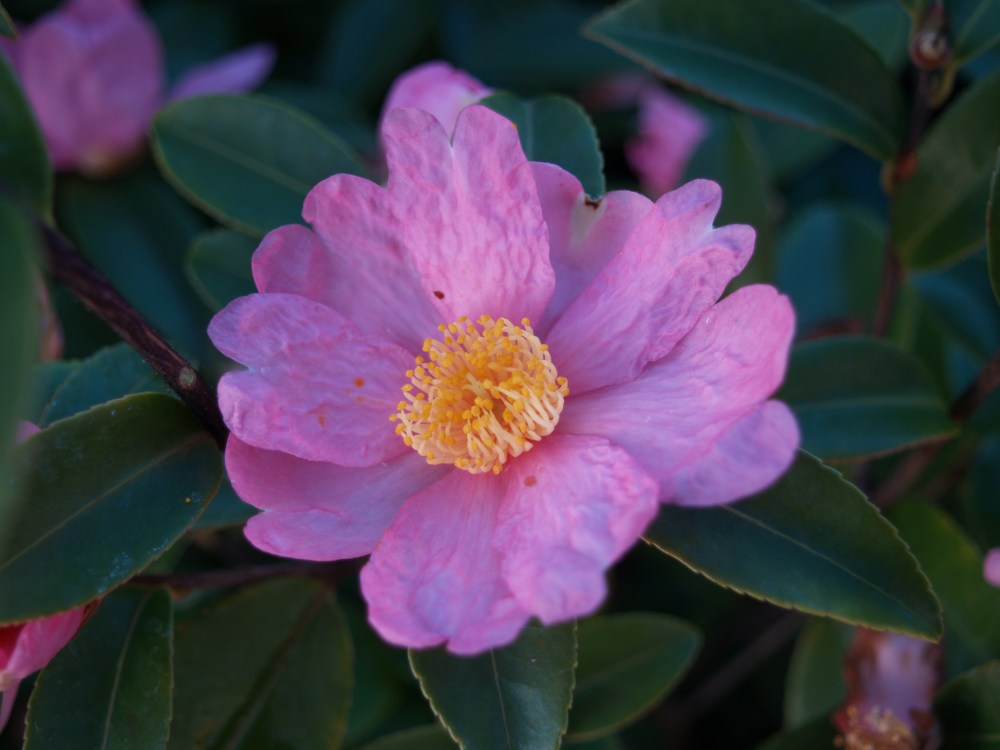 The fall blooming Camellias weren’t bothered at all by the cold, and Snow Flurry (the white double flower below), Chansonette (above), and Winter Star (below) will flower into December. Winter’s Interlude will not begin to bloom for several weeks, but then buds will open intermittently in warmer periods through the winter.