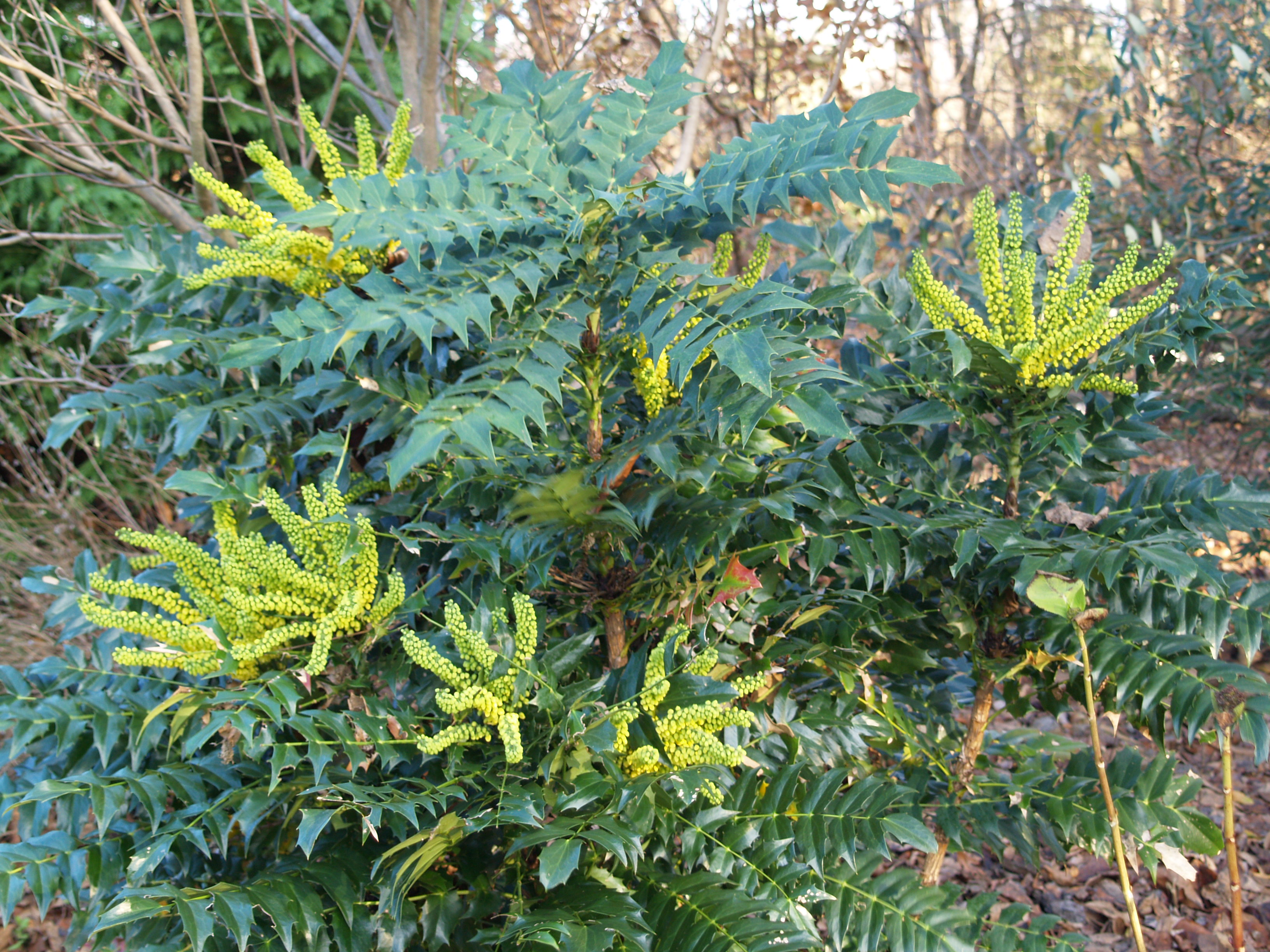 With exceptions. ‘Winter Sun’ mahonia (Mahonia x media ‘Winter Sun’, in bloom below) is one of those.