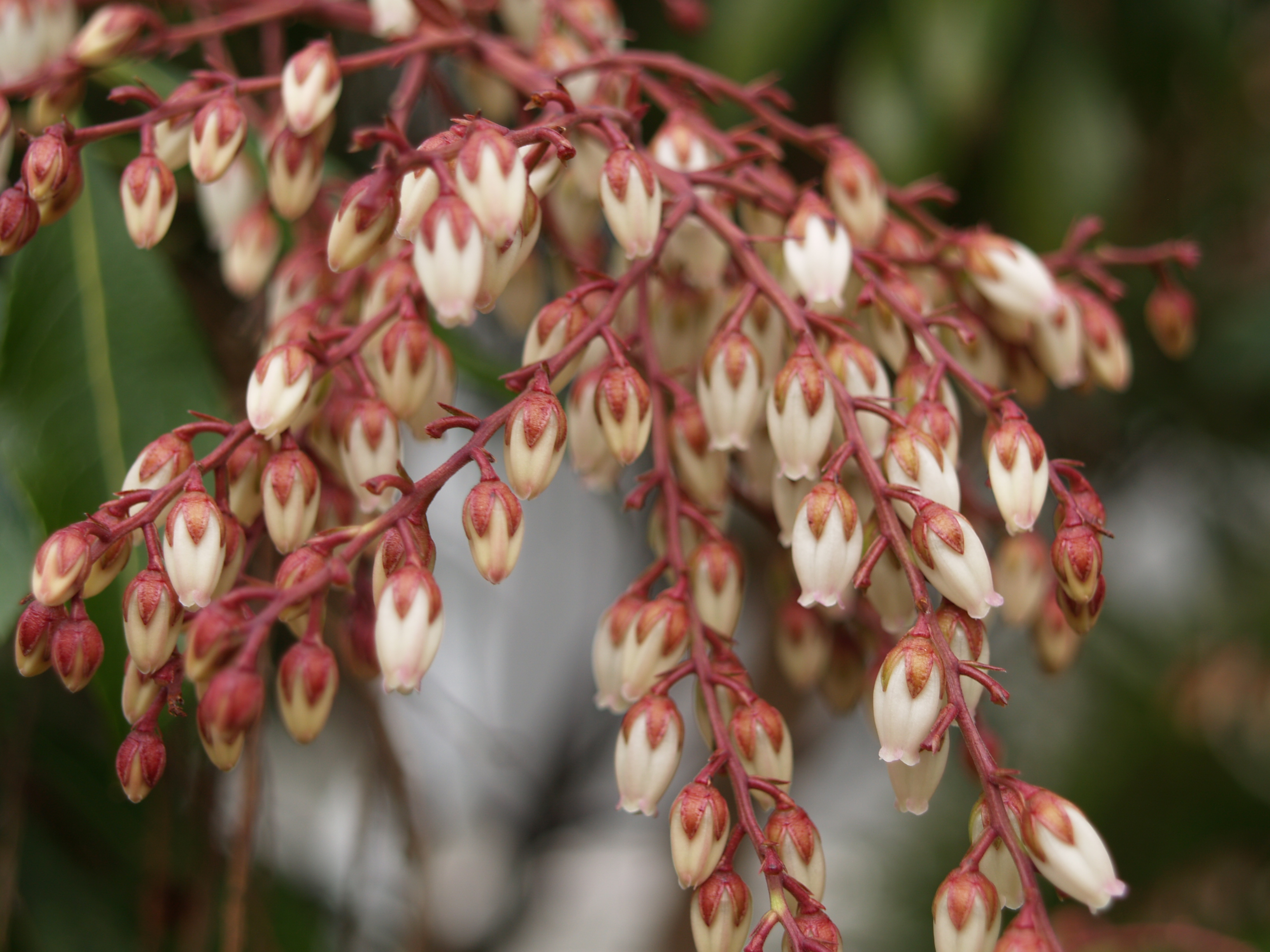 A certainty is that the andromeda (Pieris japonica, above) will survive the winter, and bloom in late winter. Already the buds are attractive, but today, hidden beneath the snow.