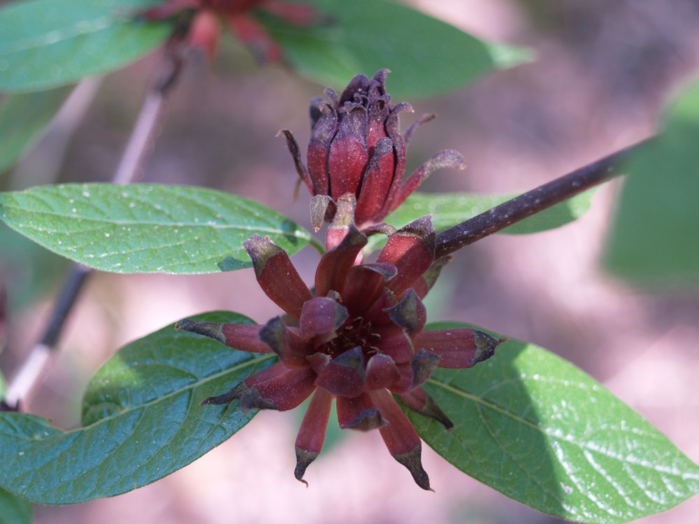 The flowers of Sweetshrub (Calycanthus floridus,above) are not so colorful, nor so odd as to standout in the garden, but the reddish-brown blooms are unusual and sweetly fragrant. This woody shrub grows with an open habit in my shady garden, but will be more compact with more sunlight. This spring I am determined to locate the yellow flowering variety I have seen at the University of Georgia botanical garden.