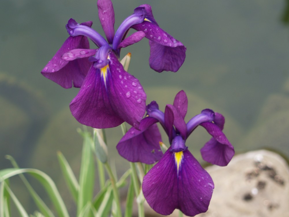 Iris, especially Japanese iris (Iris ensata variegata, above) that thrive in the shallows of the garden ponds and in damp ground. There are more versions of this plant than I could possibly collect, and each is a delight, with bright colors and distinctive markings.