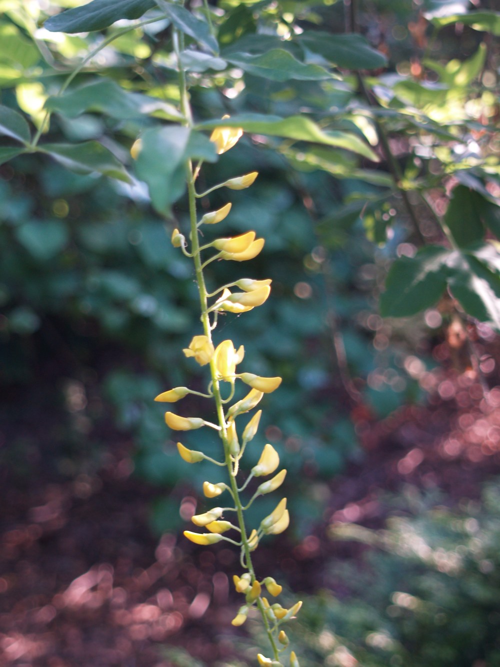 I have often admired the abundant bright yellow blooms of golden chain tree (Laburnum x watereri ‘Pendulum’, above) in photos of English gardens in magazines. I planted two of a weeping variety rather than the tree form because it seemed a bit unusual, and I was reasonably certain that it would remain small. I had no idea that they wouldn’t grow at all, but I believe that golden chain resents the heat and humidity of Virginia, though I have planted them in a cool, partially shady spot next to a small pond and stream. The trees survive, and bloom weakly, not at all like in the magazines, but then I suspect that dogwood and redbud are not so grand in those gardens.