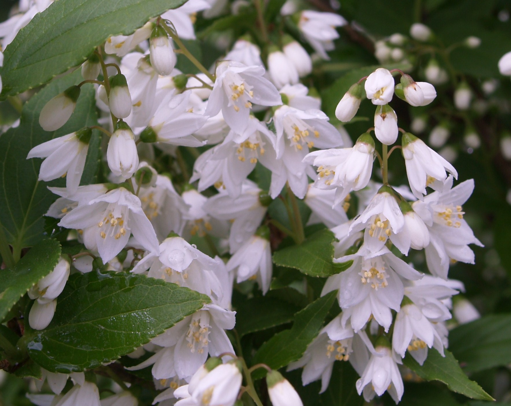 Deutzia Nikko (above) began to show color several weeks ago with white peaking from its numerous buds, and now the small white flowers cover the shrub with no sign of fading. This low growing deciduous shrub is under appreciated, and should be used more extensively.