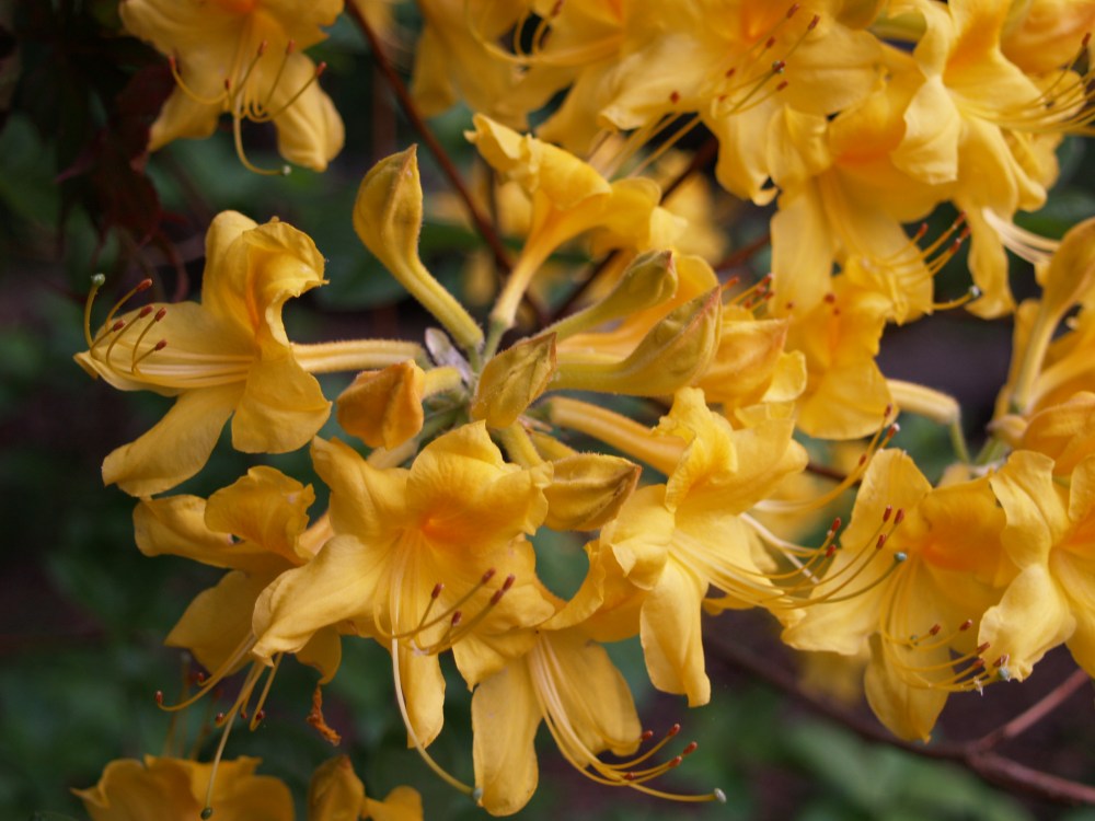 The deciduous azaleas (above) have never been bothered by deer, and though I have sung their praises recently, I will say again that there is no better shrub for the partial sun of the forest’s edge or any spot where there is some break from the blazing summer’s afternoon sunlight. In general, deciduous azaleas are more upright in growth than the evergreen types, and their bright yellow, orange, and red blooms are quite spectacular for a few weeks.