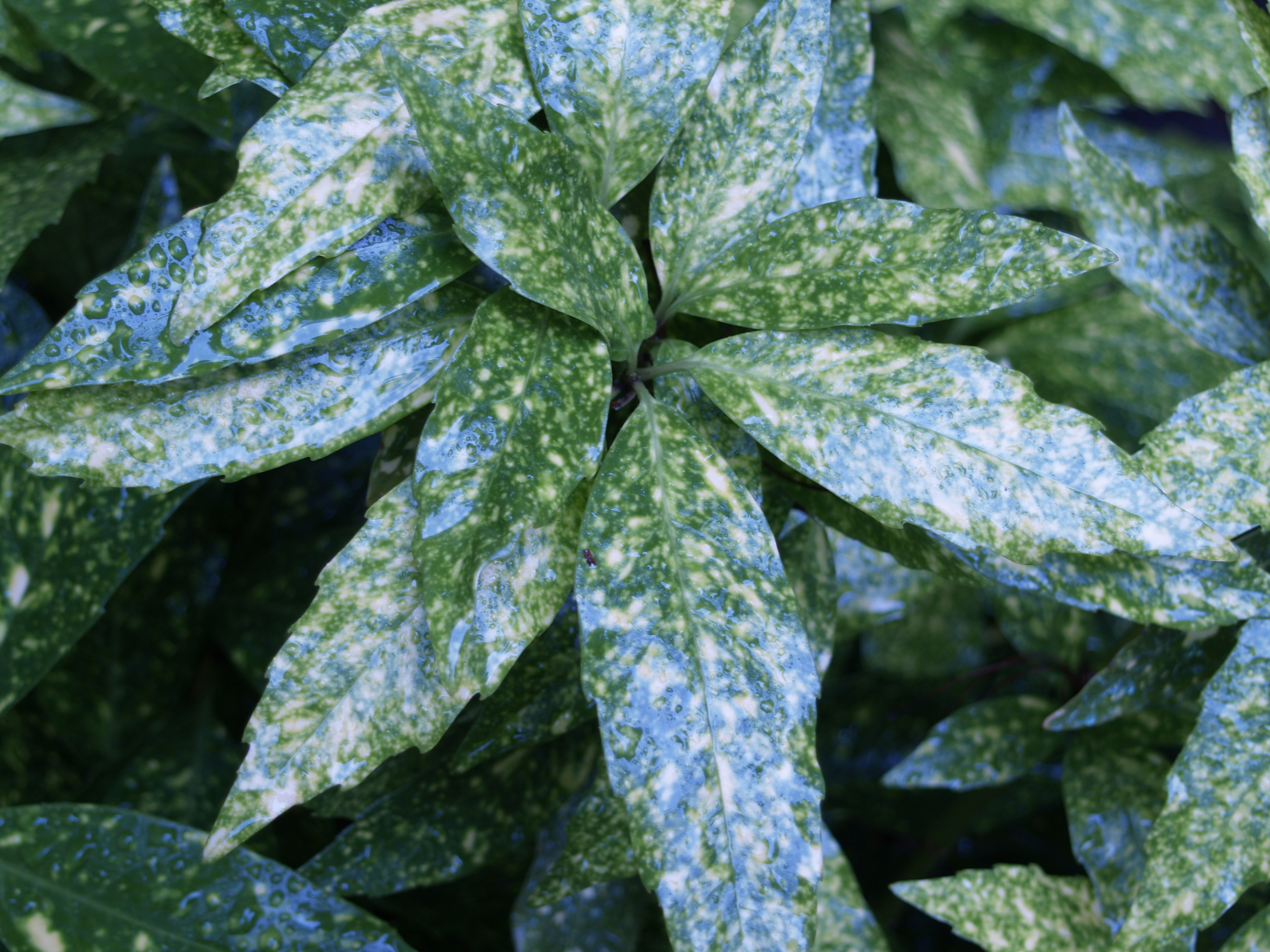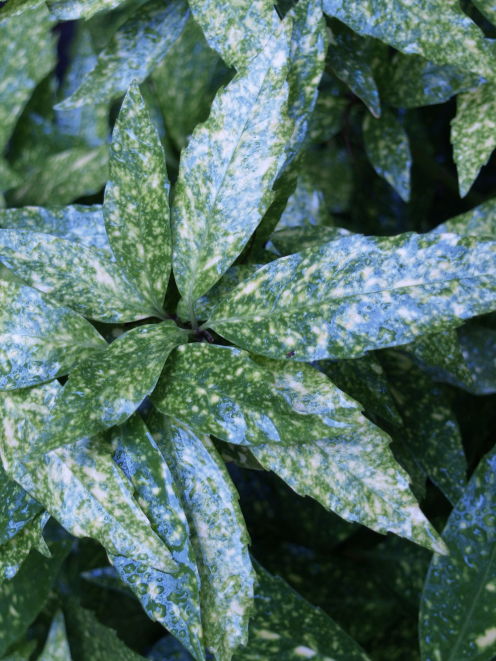 I mention Japanese aucubas (Aucuba japonica) occasionally in this space, usually when discussing the damage that deer have done to the garden in the past, but when I was considering evergreen shrubs to brighten a dank, dark part of the garden under overhanging poplars and maples, one choice was easy. Not one type of variegated leaf aucuba but two, Gold Dust (above), with bright yellow spots sprinkled liberally on a medium green background, and Picturata, with solid yellow blotches that nearly cover the large leaves. Early on I was convinced by other gardeners that aucuba was only marginally hardy in Virginia, but I have seen only a little leaf damage in the most severe winters a decade or two ago. I am convinced that there is no better suited evergreen shrub to brighten a shady corner.