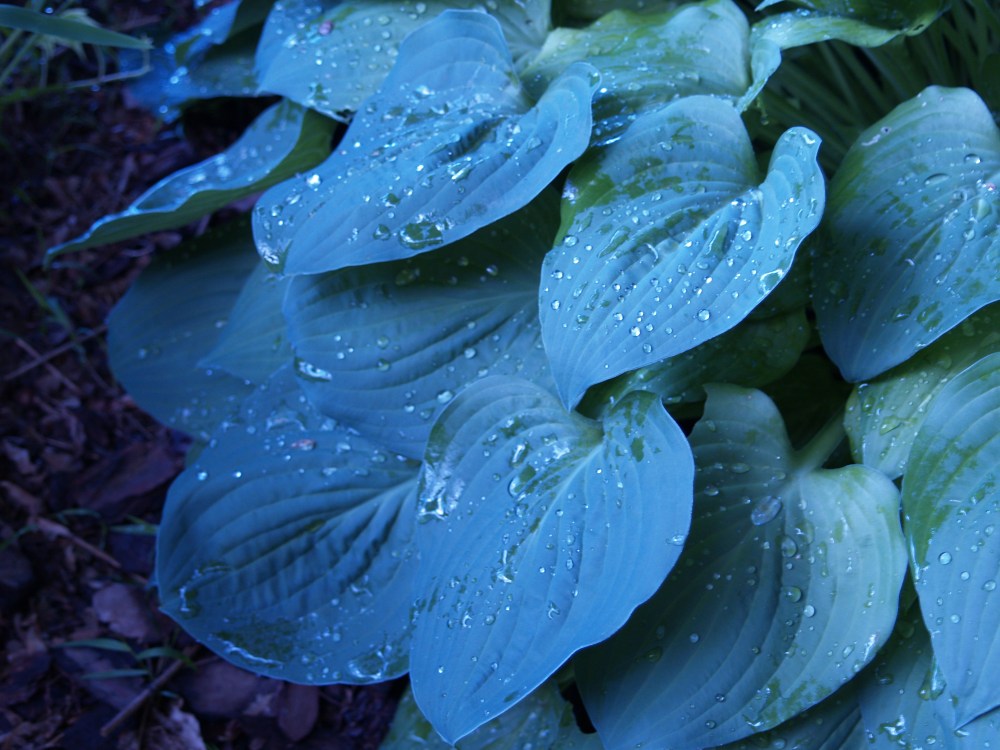 ‘Krossa Regal’ and ‘Halcyon’ (above) are blue leafed hostas with contrasting habits. Halcyon grows much wider than tall with frosty blue-green leaves, while Krossa Regal is similar in leaf color but very upright in habit, a form quite unusual with hostas. There are few better hostas, and no other blues that are superior in my experience.
