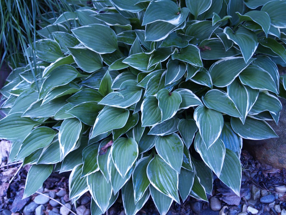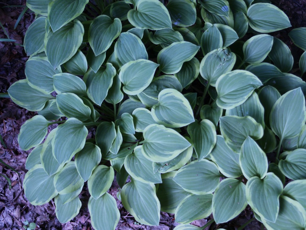 ‘Blue Cadet’ (above) is a vigorous, low growing hosta with blue-green leaves, and along with ‘Golden Tiara’ (below) are two that I have subjected to the worst in hosta torture, planted in a sliver of soil between thirsty maple roots. Both survive admirably, but given more generous soil and moisture they spread at a moderate pace (quickly for hostas). I have given ‘Allan P. McConnell’ (below) more luxurious accommodations, and this low growing green with narrow white margins spreads steadily to form wide, low clumps, and all are appropriate for growing under taller shrubs and perennials, or even beneath other hostas.