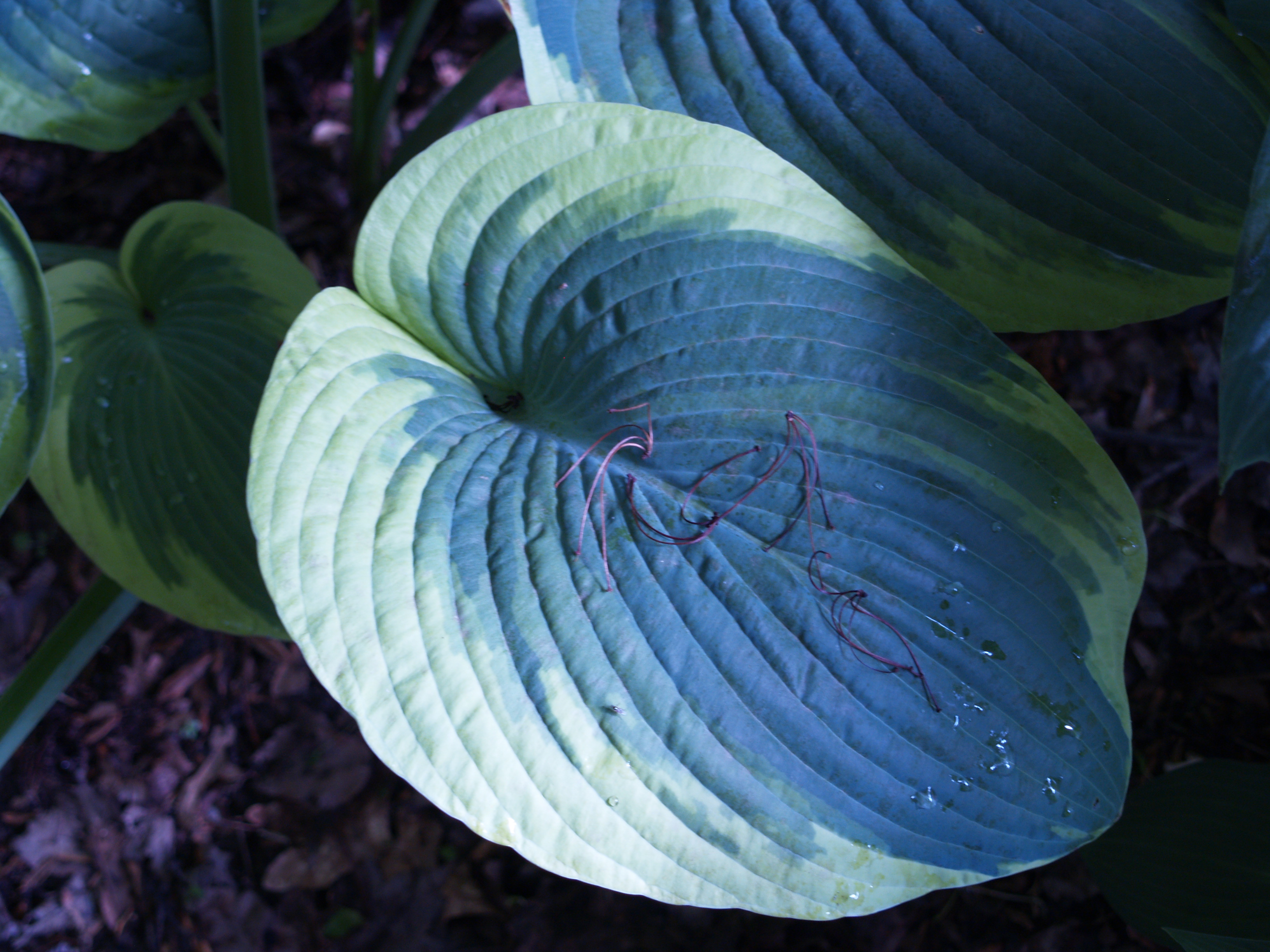 Now, the numbers have diminished somewhat, but many dozens remain, and since I have set a strict schedule to spray a deer repellent, many hostas that had nearly disappeared have returned. Today we’ll explore some of the sturdier and more striking members of the collection, and with luck I might recall many of their names.