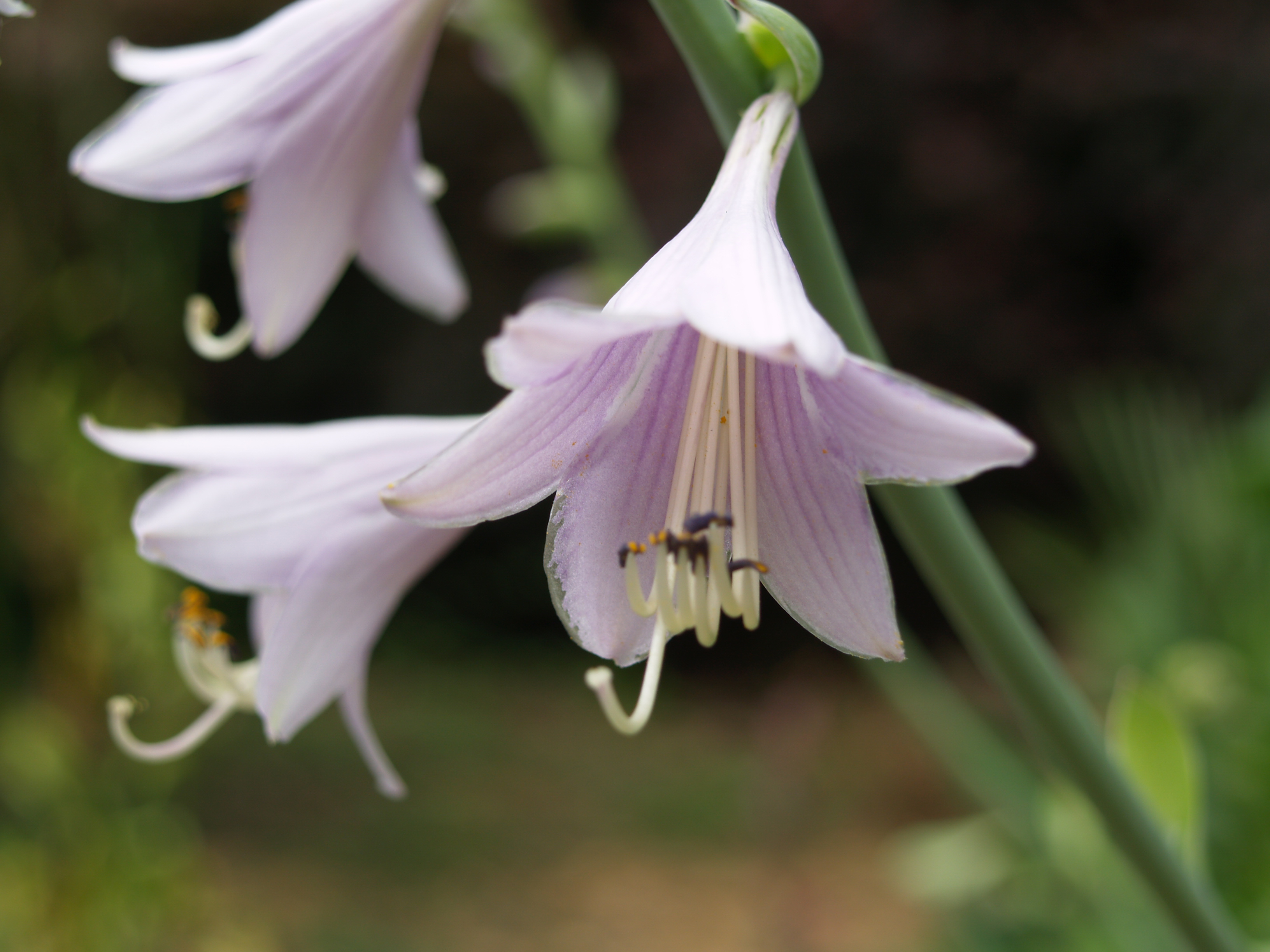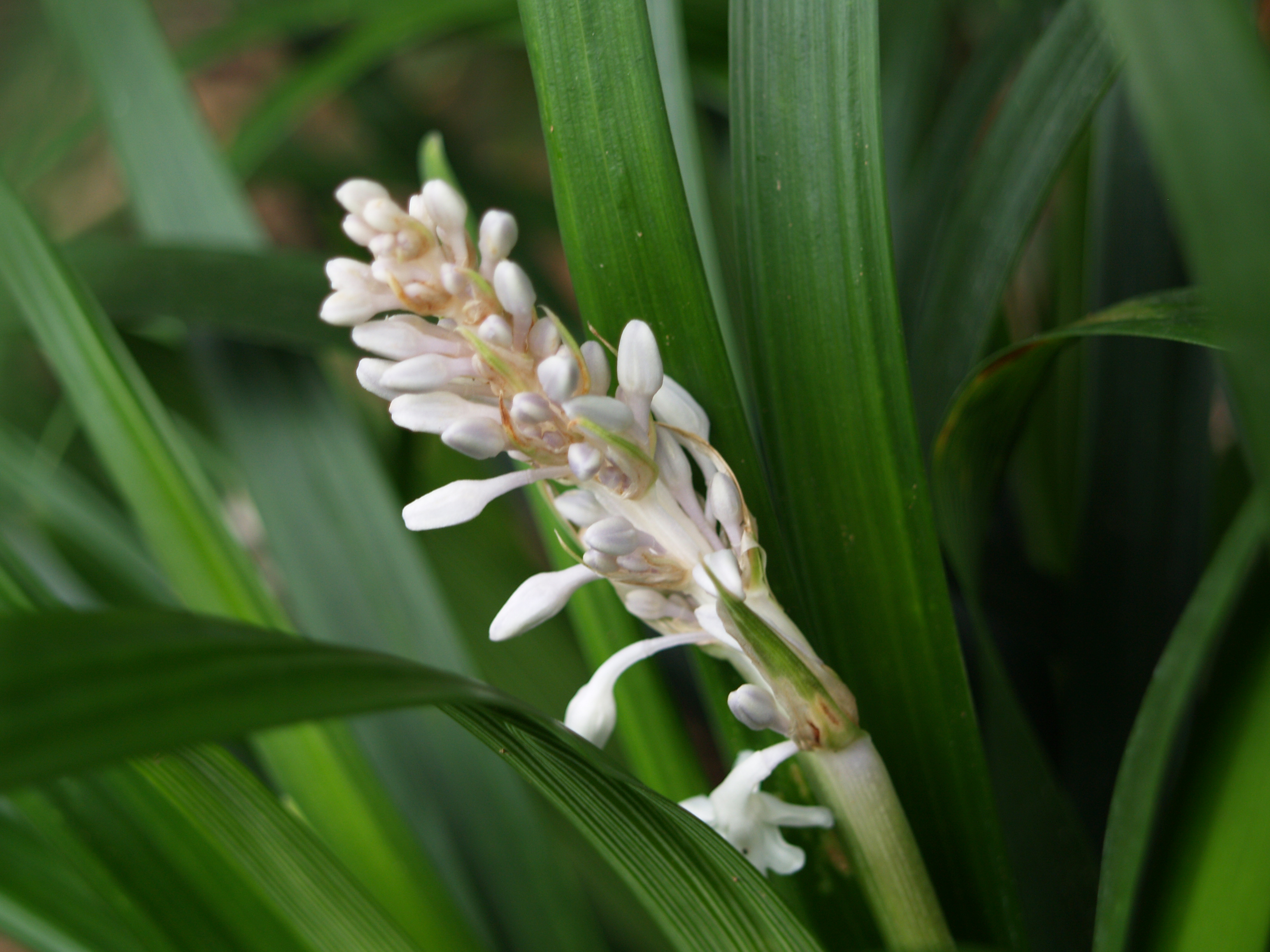 The hostas (in bloom , above), daylilies, and liriopes have been favorites of the deer in past years, but have not been damaged at all since I began to spray the repellent a year ago. The liriopes are beginning to bloom, including a tall growing mondo grass ‘Crystal Falls’ (below) that was planted earlier in the spring. I have noticed that Crystal Falls is intolerant of more than a few hours of direct sun, much more sensitive than other liriopes and mondos, but the tall arching blooming stalks are more obvious than other types, so this appears to be an excellent choice for shady gardens.