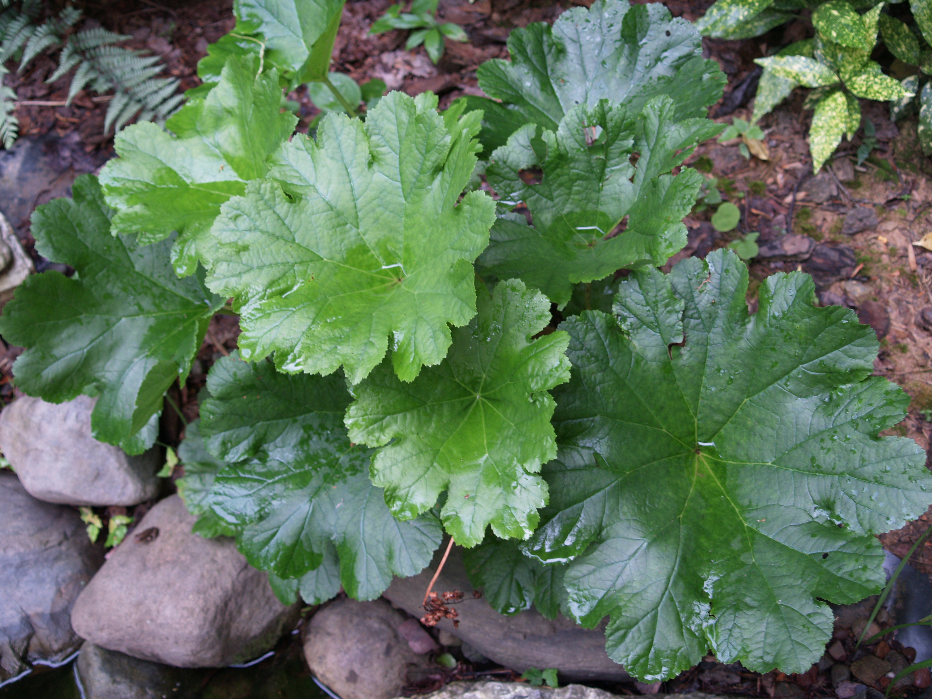 No, not me, I’m big, but more bulldozer than beautiful, useful for digging holes and moving boulders. In my garden I’m a fool for any plant with large leaves, trees, shrubs, perennials, or tropicals, the bigger the better, I’ve got to have them. In garden design big leaves contrast nicely with just about any foliage in the garden, needled or broadleaf, but there’s probably some deeper psychological need that drives my fondness, and no doubt I have plenty of issues there.