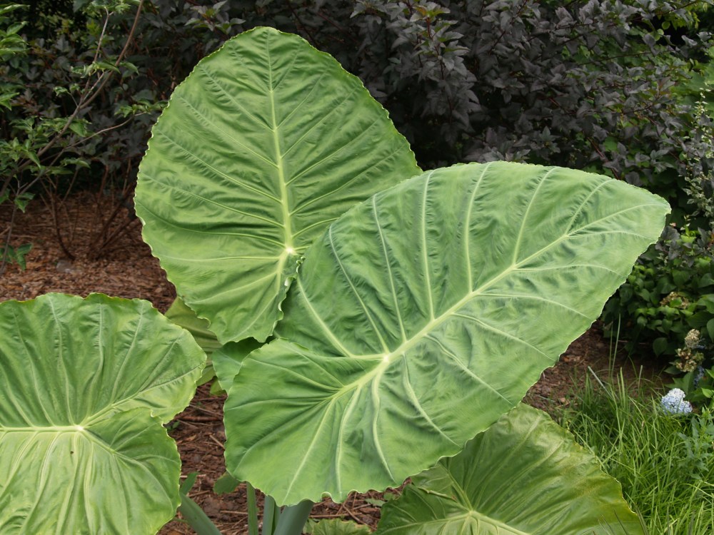 Tropical elephant ears are the largest leaves in my garden, and I’ve steadily grown my collection of mostly colocasia and a few alocasia to a dozen or so varieties, and with offsets that I’ve harvested there are enough plants to fill half the basement when they’re brought in for the winter. The monster of the group is Colocasia gigantea (above), with leaves nearly five feet long, and if it was planted in more moist soil, and given a smidgen of fertilizer I’d have to find a new home for it with a lot more space. I saw a photo the other day where the gardener had pampered theirs, and the leaves looked to be closer to eight feet, so I’ve already planned for a nice damp spot for next year where it can grow without overwhelming everything in its path.