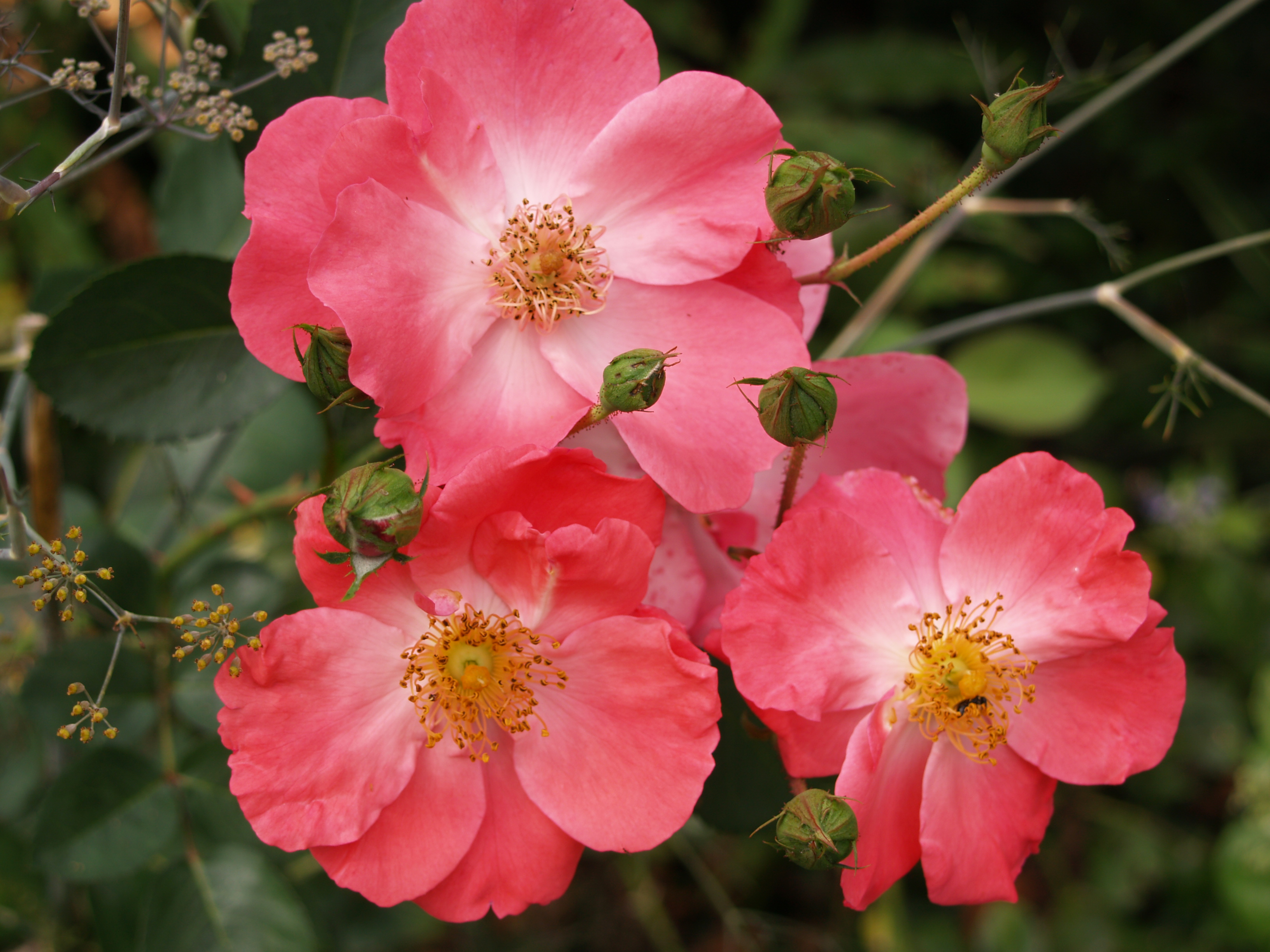 The past week has been quite hot, with temperatures in the mid-nineties that have become so familiar since early in the spring. No rain is forecast in the next week, and after generous rainfall in the first half of August it has turned quite dry. With the turn to cooler temperatures I will not have to be so attentive to watering the new perennials, roses (Rose ‘Oso Easy Paprika’, above), sumac, and loropetalum I planted a week ago.