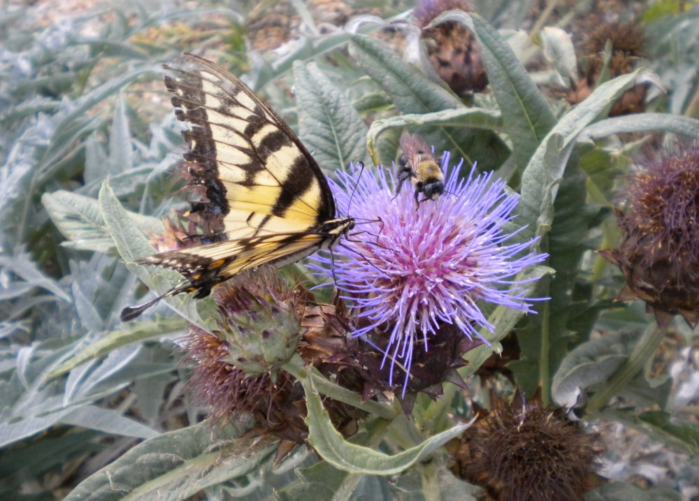 Unfortunately, the summer’s heat and extended dry spell have made the garden a bit crispy around the edges, but there’s plenty to see, and much in bloom. Butterflies abound, swooping between late summer blooming perennials, and in greater variety than I see in my garden.
