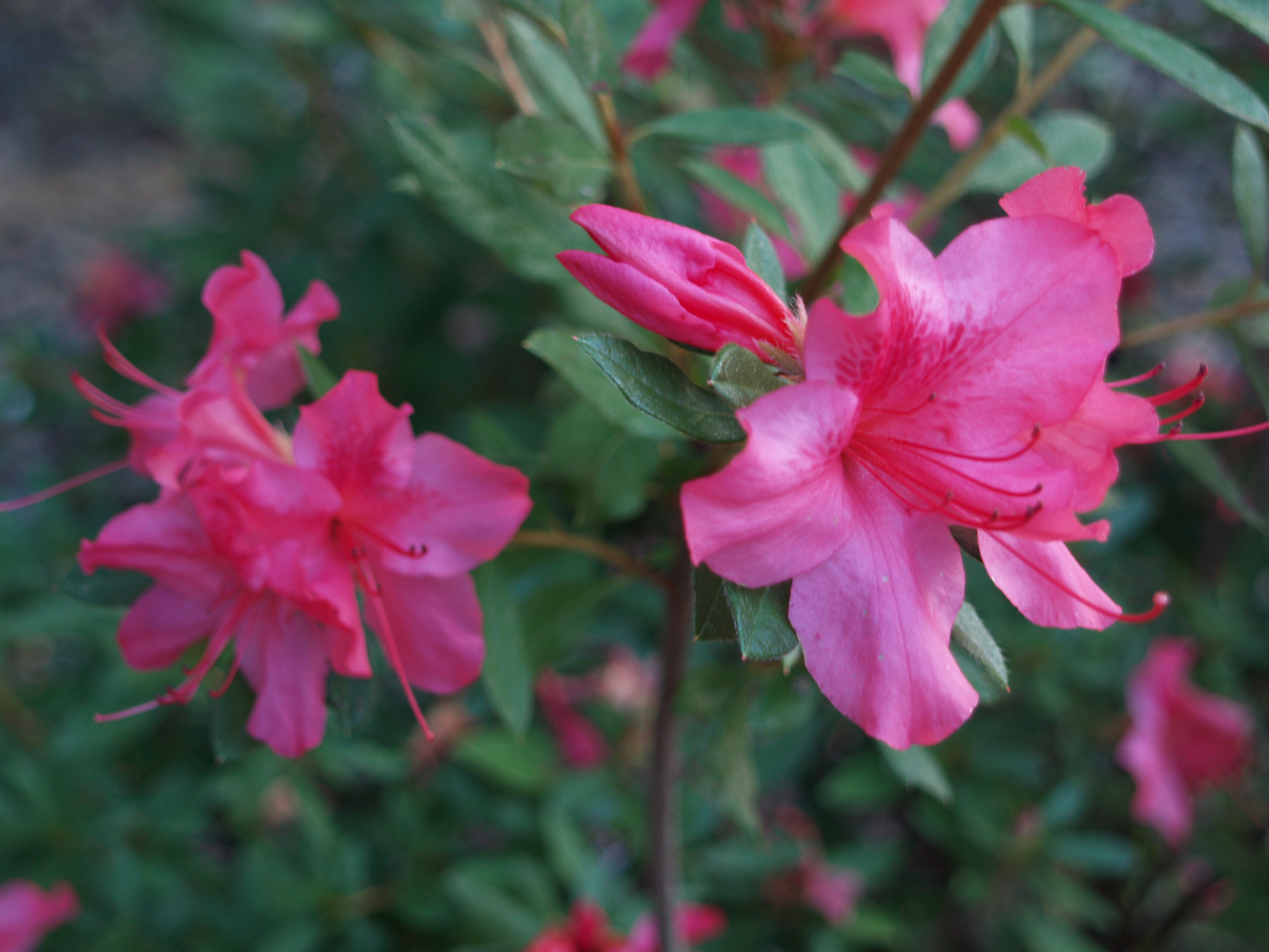 The Encore azaleas began blooming in mid August, several weeks early in my garden, and have buds that will continue to open until a hard frost. ‘Sunset’ and ‘Princess’ are loaded with buds, but have failed to bloom yet, and probably will not unless warm temperatures stay around for another couple weeks. ‘Rouge’, ‘Amethyst’, ‘Empress’, ‘Royalty’, ‘Sundance'(below), and ‘Twist’ bloom most dependably in my garden, and all have flowered for nearly eight weeks.
