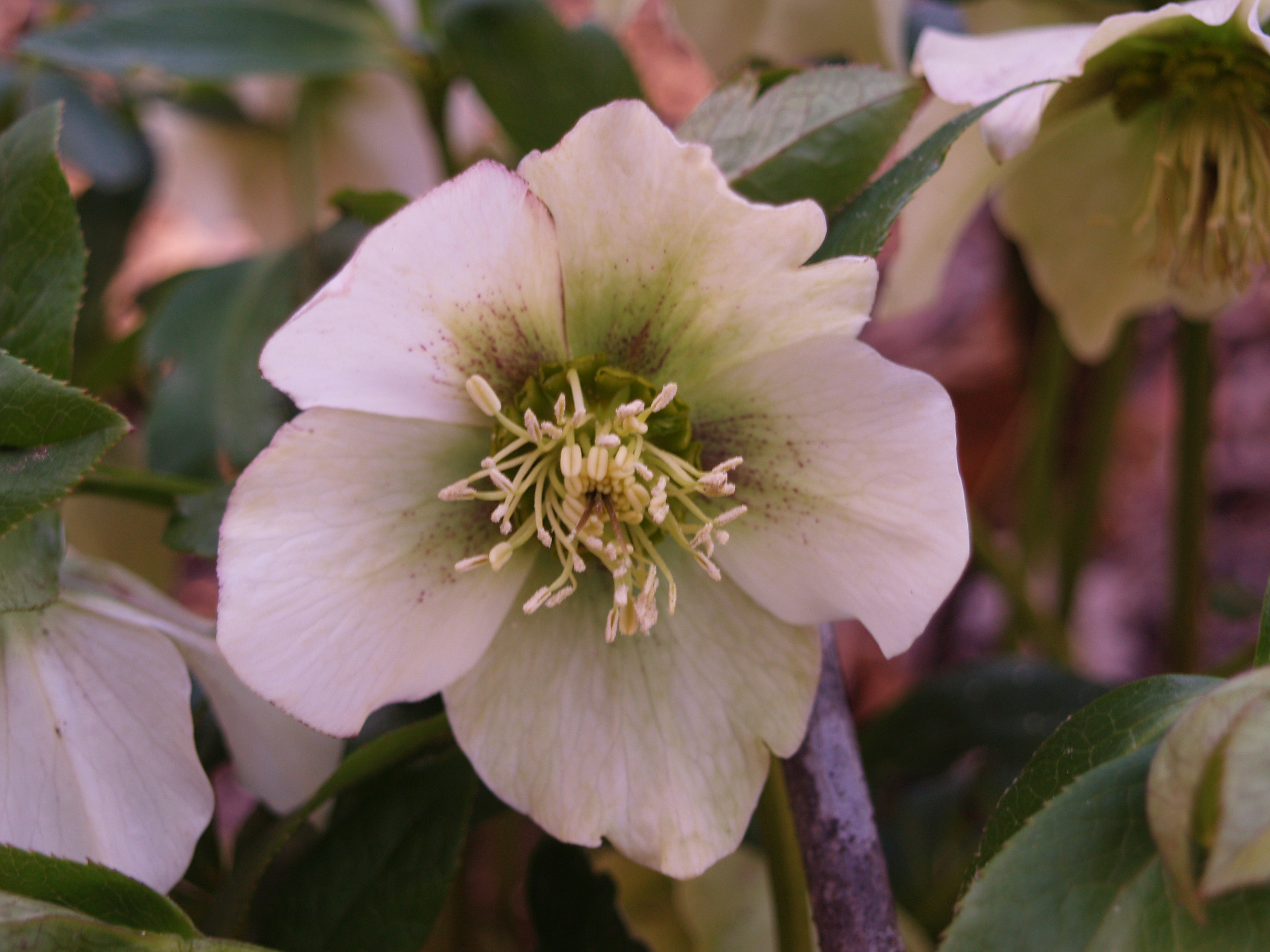 In my garden the hellebores have been planted in an area with thin, dry soil, and despite this less than ideal circumstance they thrive and seed themselves about so that there are now many seedlings that are indistinguishable from the ones I planted. Hellebores will thrive in more full sun than the spot I’ve chosen, and prefer a deeper, well drained soil (and which plants don’t), but often plants must cope with what they’re given, and hellebores have handled this with ease.
