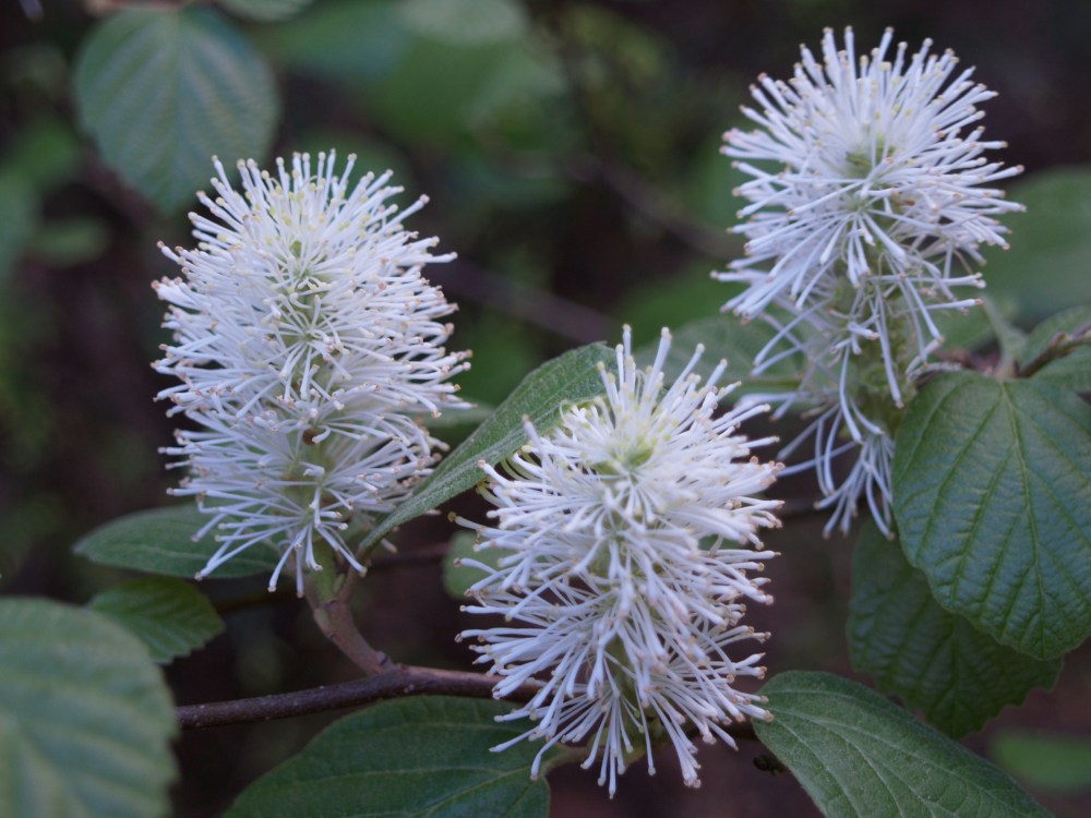 Anyway, on to other blooming shrubs. I am careful to note when Fothergilla (Fothergilla gardenii x major ‘Mount Airy’, above) should be blooming since it is planted along the outside of the north border and cannot be seen from the inside of the garden. There are many plants that are enjoyed by the neighbors, and only on occasion by me when I push my way through the dense plantings. I mowed a narrow strip of lawn along the border years in the past, but much of it is now so shady that grass doesn’t grow, and the neighbor mows the little bit that does.