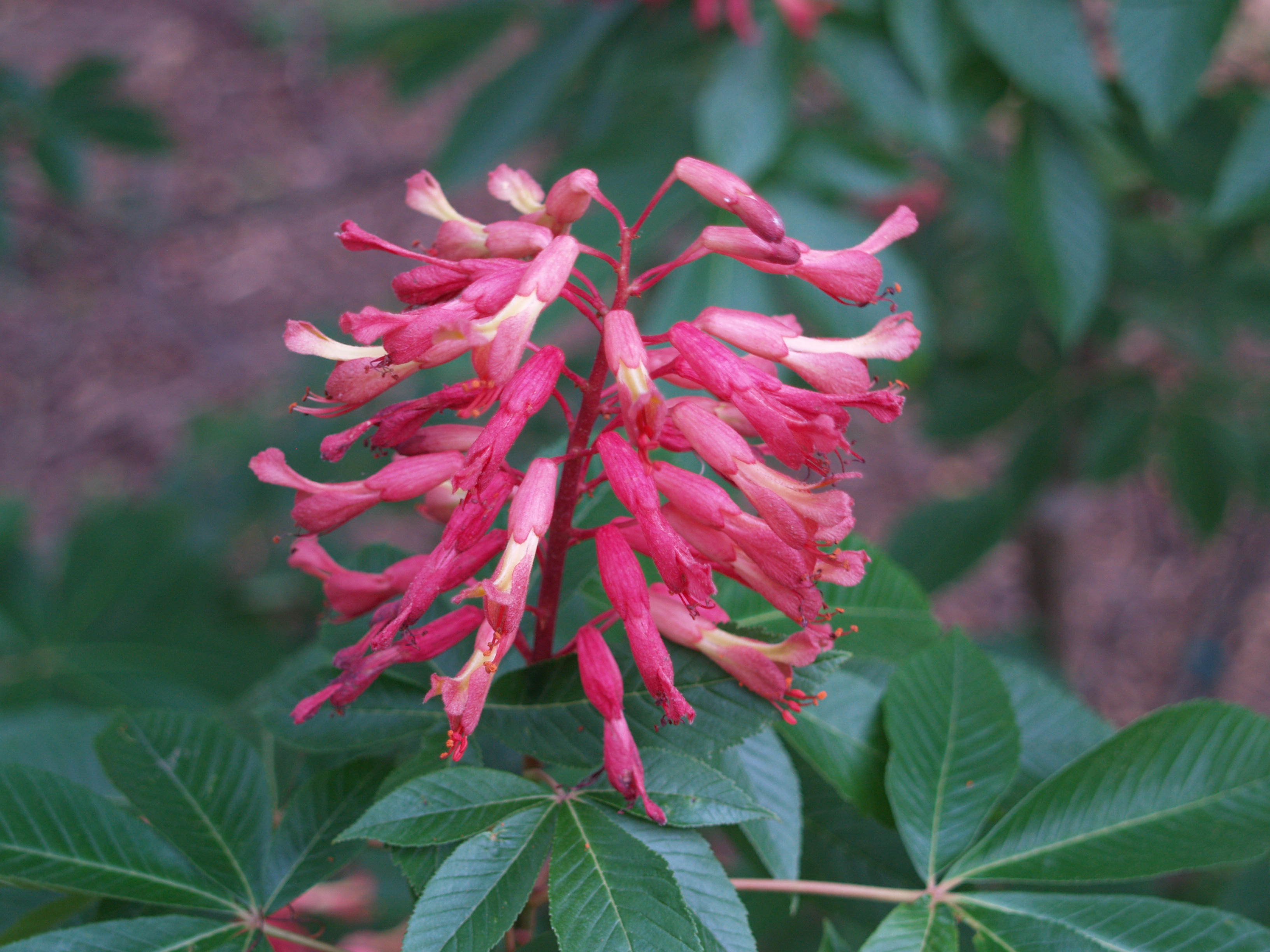 Back to the southern border (which is deeply shaded by mature maples and poplars) there are several shrubs that bloom late in April into May. The flowers of the Red Bottlebrush Buckeye (Aesculus pavia, above) are a little ragged once they have opened, and a day and two prior to opening is when they are best. For years the buckeye was a squat shrub, but in the past two years it has decided to grow more upright. Still, there are enough low branches to enjoy the blooms.