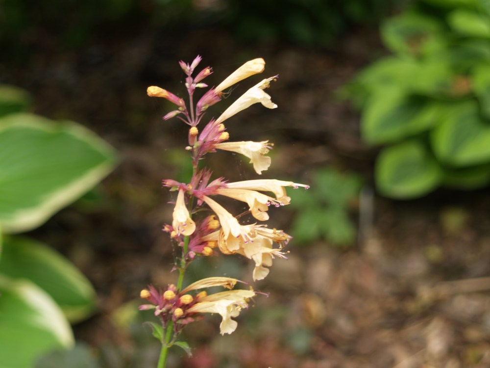 The soil beneath the wall is cool and damp, and so the gladiolus has not been bothered at all by the heat. Agastache ‘Summer Glow’ (above) is planted nearby in considerably drier soil, and it shows some strain, but is blooming and I don’t believe that it will be a concern.