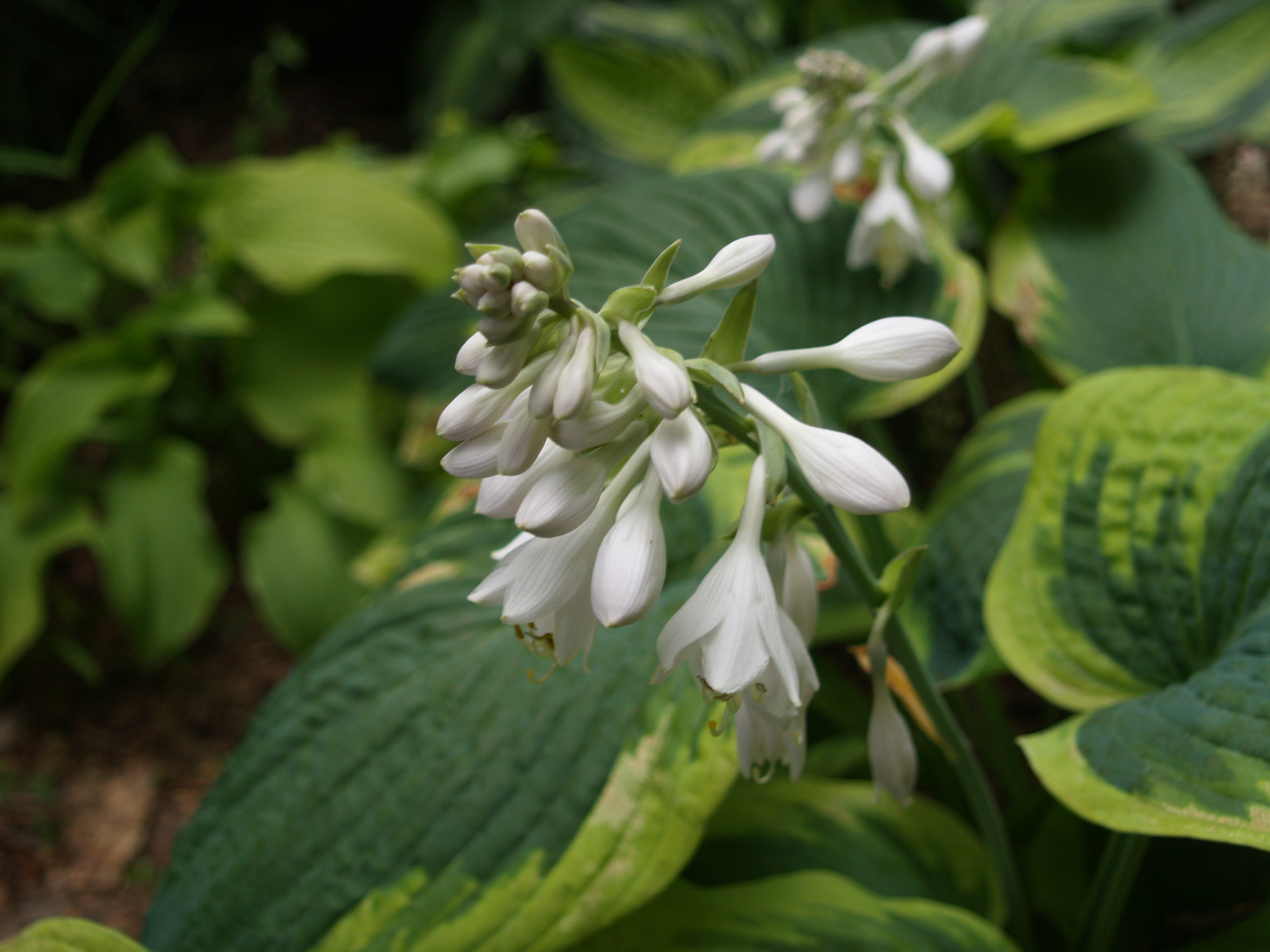 Few people plant hostas for their blooms (above), and I will include myself in that group, but beginning in June there is one hosta or another flowering into September. I prefer ones with short stalks, rather than the tall and awkward types, and by coincidence most hostas in the garden are short ones. The few taller stalks are cut down shortly after blooming while the short ones are ignored.