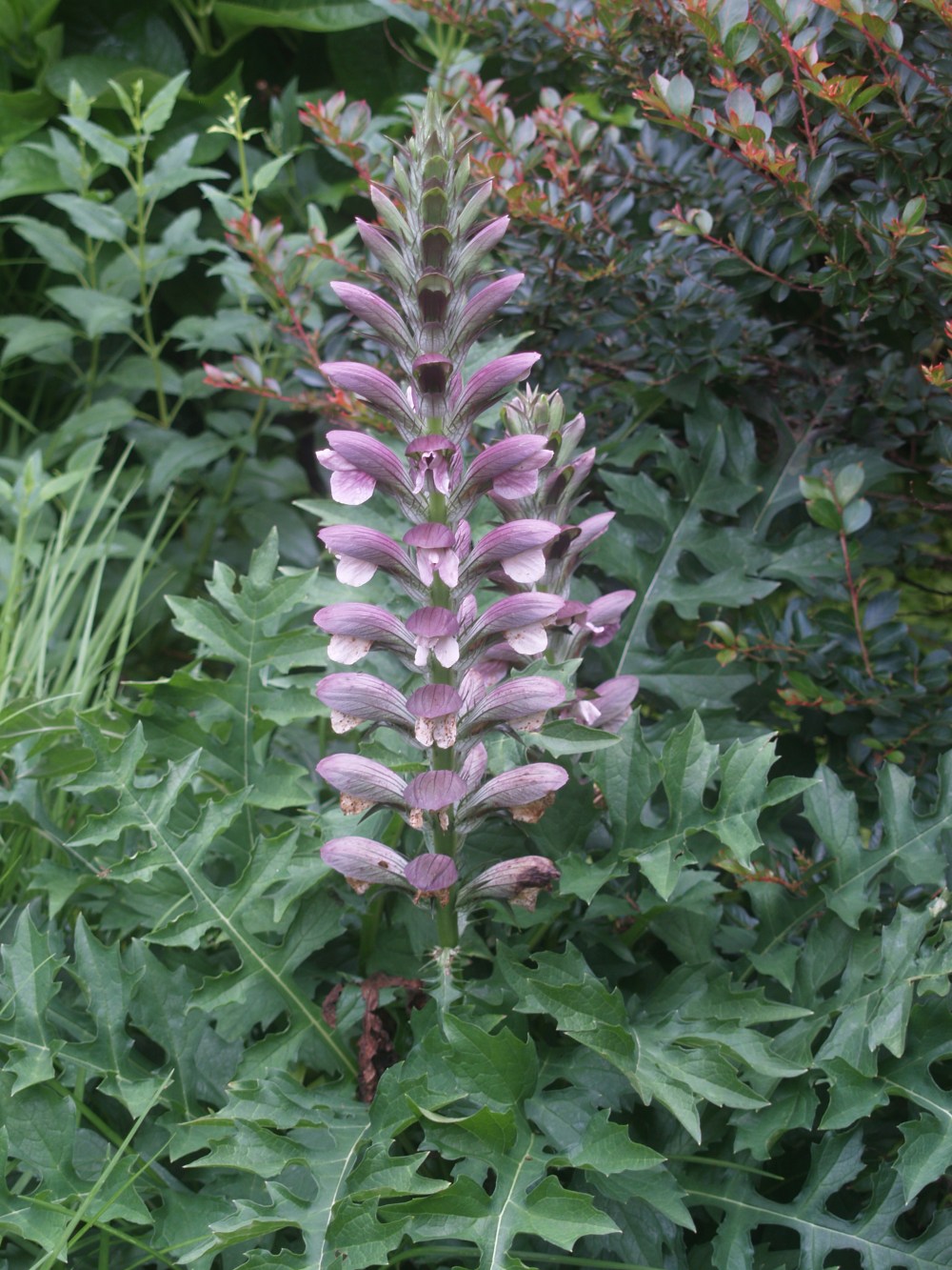 Earlier in the spring I planted a variegated acanthus (Acanthus mollis ‘Whitewater’) with leathery glossy green foliage marbled with white. The effect is quite splendid if you enjoy variegated plants, which I do, and I expect that it will be as sturdy as the plain green version.