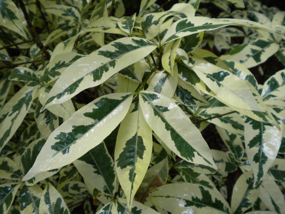 I have not been successful with gardenias in my garden, though some recent introductions claim to be sufficiently cold hardy. The variegated gardenia (below) at the Botanic Garden was not blooming, and it is most definitely not cold hardy, but its foliage is wonderful, and ornamental even when the fragrant blooms are not present.