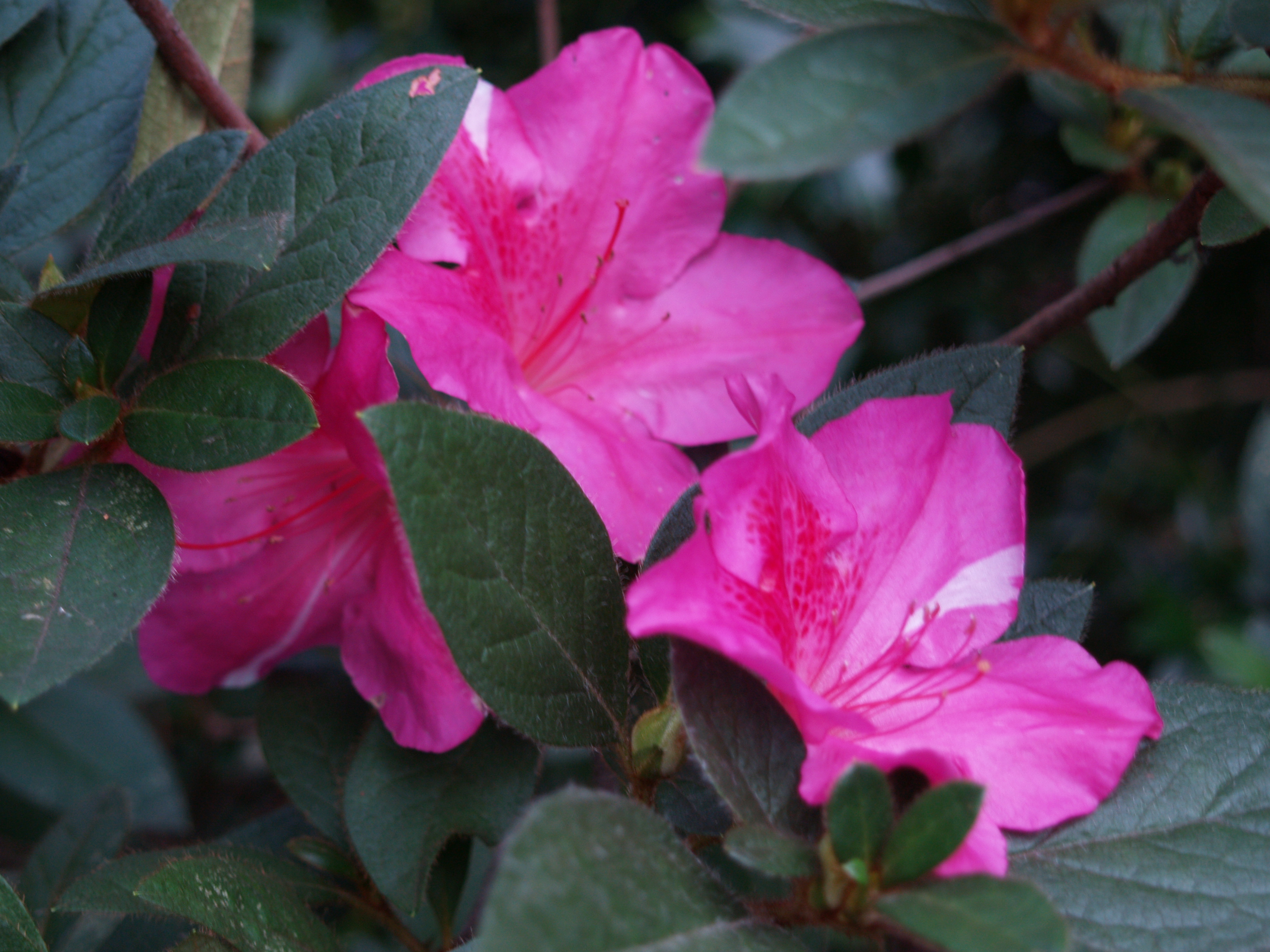 Also, with cooler temperatures the Encore azaleas have begun their late summer bloom, and on the heavily shaded south side of the garden there were a few scattered flowers on ‘Autumn Twist’ (below) early in August. On older plants ‘Twist’ has branches that are nearly all purple, while others are striped with varying amounts of white and purple. The solid purple flowers are probably a reversion to ‘Autumn Royalty’, but if that is the case the reversion doesn’t seem to be taking over the plant, only select branches, so I see no harm and don’t plan to prune this section out.