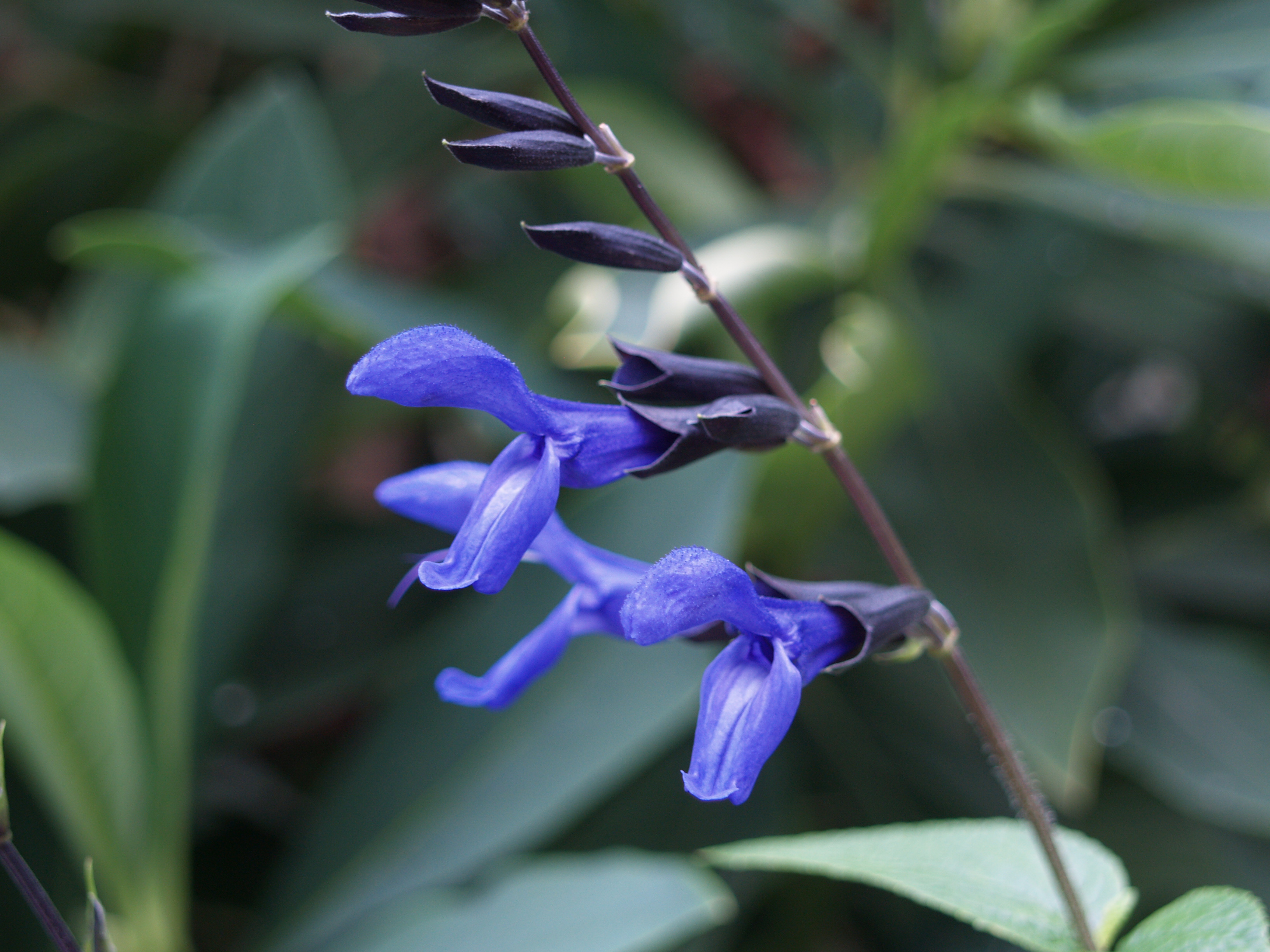 A year ago I planted a few of the wonderful salvia ‘Black and Blue’ (Salvia guaranitica ‘Black and Blue’, below) which is variously described as cold hardy to zone 7 or zone 8, and unfortunately it did not survive the winter. Many Mediterranean-type plants that are plenty cold hardy do not survive wet winters, and perhaps this is the problem with the salvia, though I’ve not seen anyone mention this. Nevertheless, I’ve planted ‘Black and Blue’ again, with hopes that a second chance might bring success. They bloom off an on (mostly on) through the summer, and with cooler temperatures in early September they are particularly floriferous.