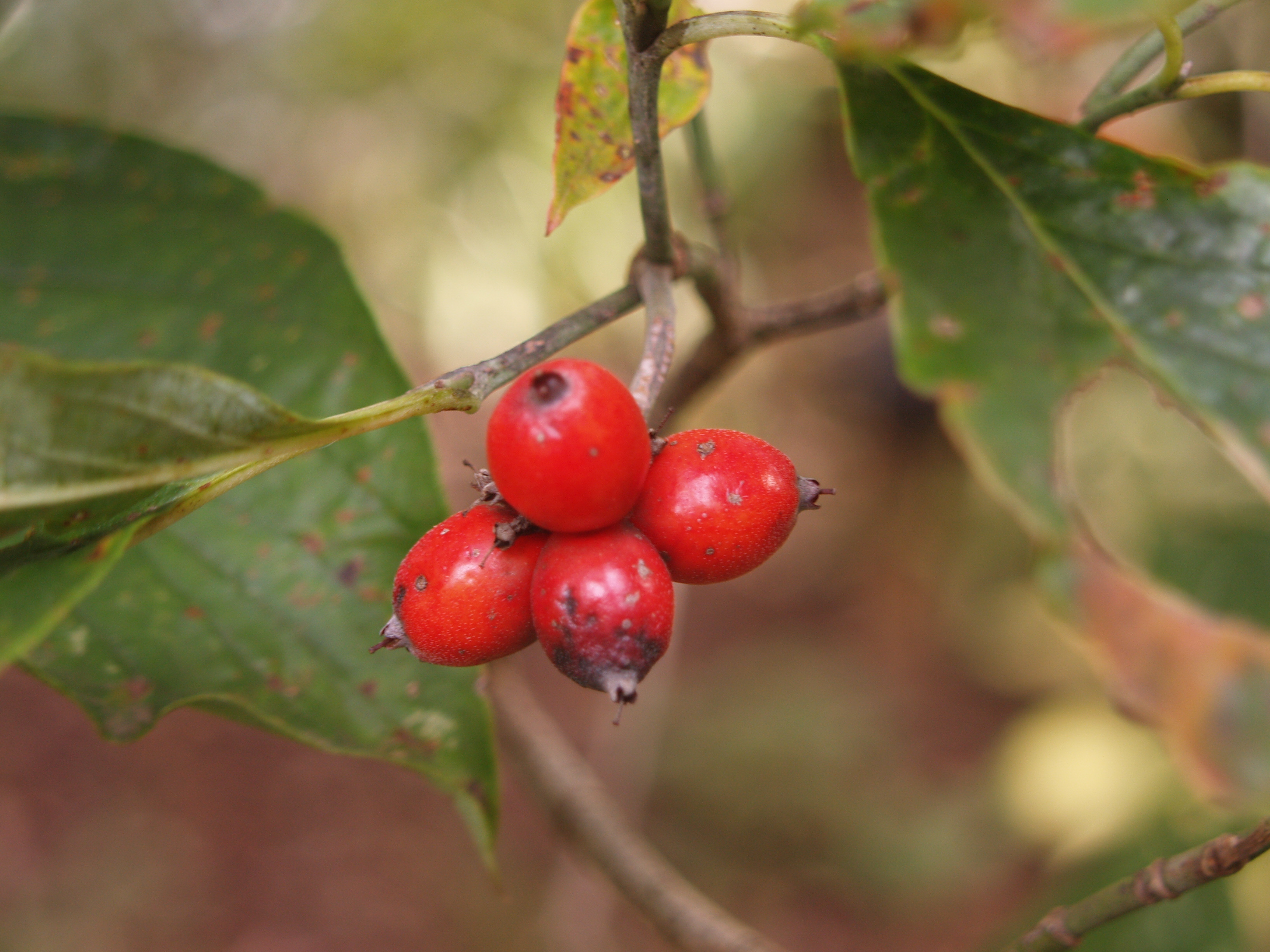 The native dogwoods (Cornus florida, below) have plenty of glossy red berries, though as soon as the leaves drop the birds make short work of them. The berries are much smaller than Chinese dogwood’s, and they are carried in small clusters (usually two to five).