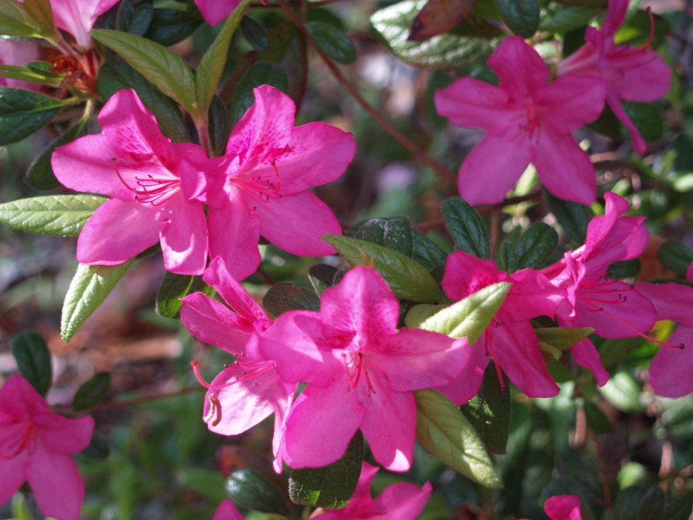 What’s going on here? In all my years ….. I’ve never seen azaleas flowering in March in my garden, or in early April for that matter. But, today there are scattered blooms on a handful of azaleas, and swollen buds on the others.