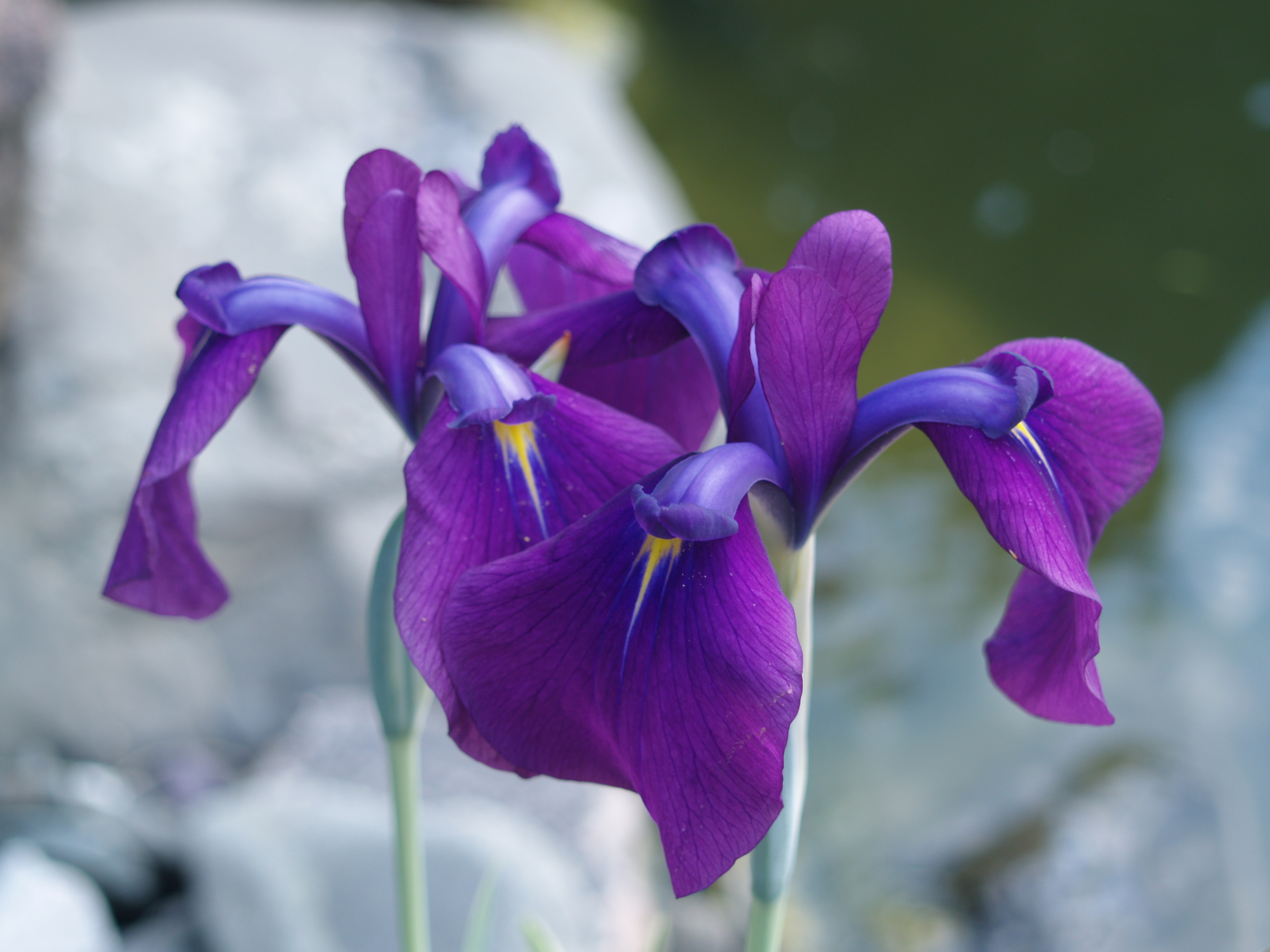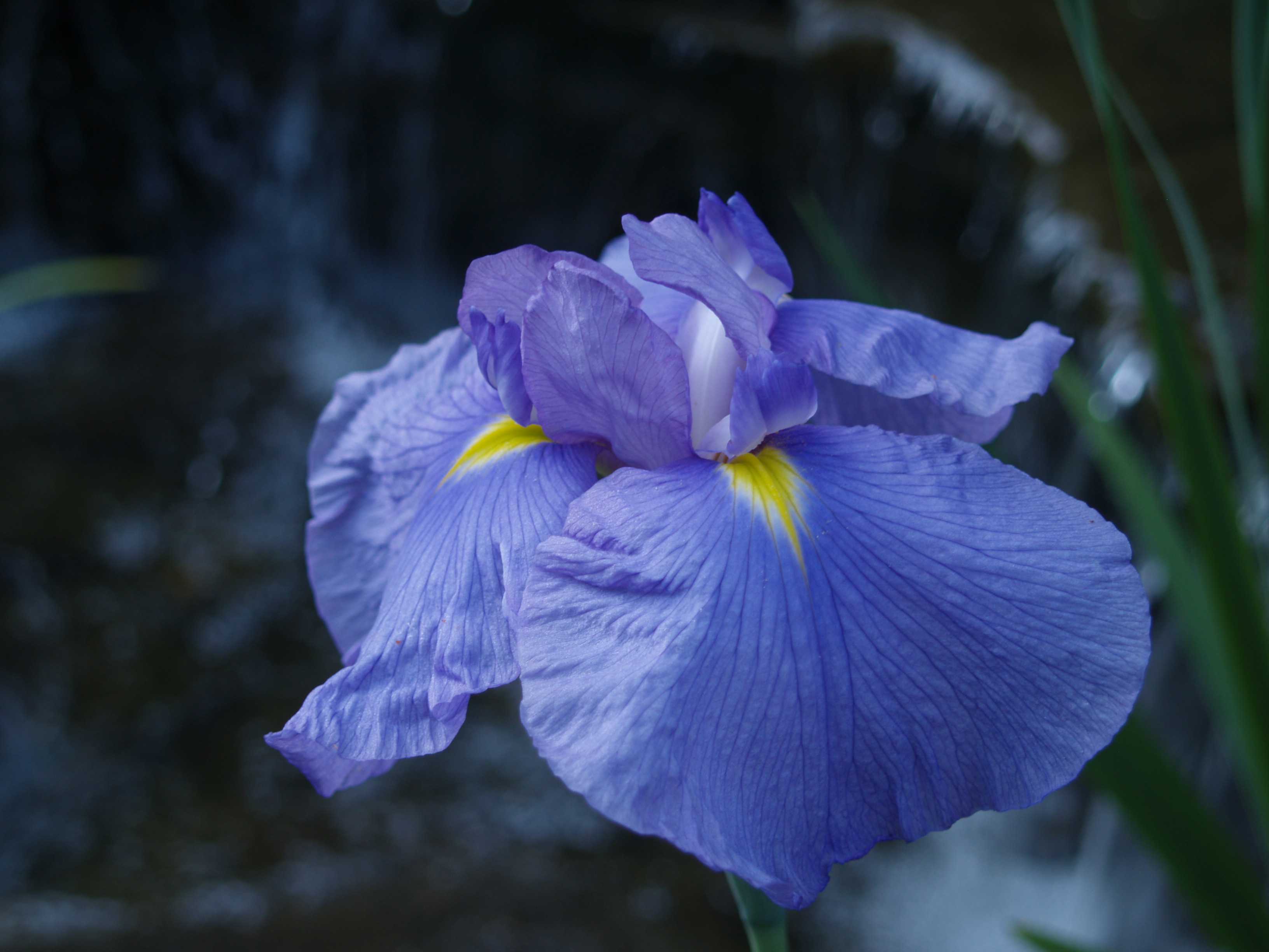 Japanese iris blooms dependably, though each flower lasts for only a few days. On an established clump there will be dozens of flowers, and there will be ten days from first to last bloom. With several cultivars and slight variations in sunlight exposure, there will be flowering irises for a month.