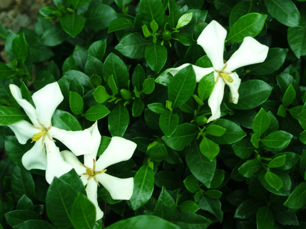 Though gardenias have splendid dark green foliage, the scented blooms are clearly their best feature. The problem for mid Atlantic gardeners is that they have been very marginally cold hardy. Despite cultivar names that indicate cold hardiness, until the last few years I’d never seen a plant that had survived a winter. Now, with inordinately warm winters (and new varieties that promise cold hardiness well below zero degrees) I’ve had gardenias survive through two winters. ‘Pinwheel’ (Gardenia augusta ‘Pinwheel’, above) has flowered off and on through the summer, and I’ll be planting a few other cultivars to give them a try. Unfortunately, with my poor sense of smell I’m not able to enjoy their scent, but the hardy gardenias are delightful shrubs even without the fragrant blooms.