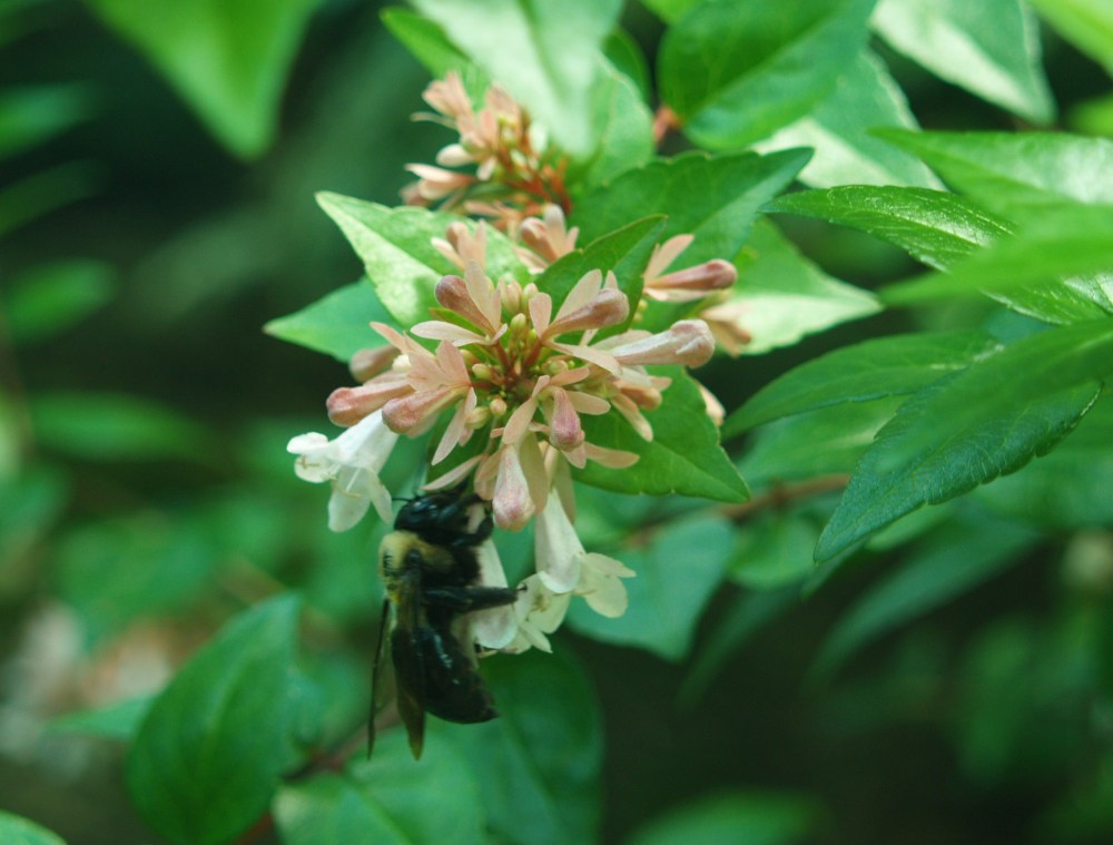 In the past few years there have been a number new introductions of the old time, summer flowering glossy abelia. The recently introduced cultivars have improved foliage color and more compact growth, but I’ve found that the small flower clusters often don’t stand out as much on the variegated and yellow leafed types (Abelia x grandiflora ‘Canyon Creek’, above). ‘Kaleidoscope’, with yellow and green variegation and a very compact habit, seems to be the best of the lot, and is perhaps more useful as a foliage plant than for its flowers.