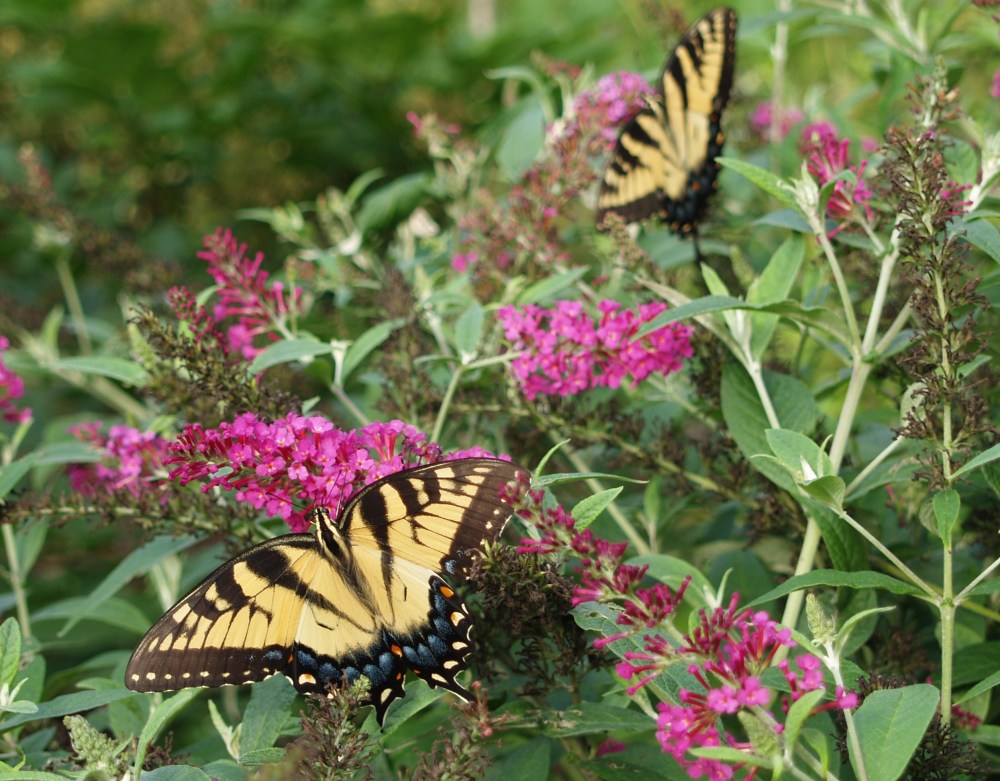 Why not spray to prevent bugs? I’m content with a garden that is less than perfect, so a few scattered plants with damaged leaves don’t bother me. I spend nearly as much time in the garden enjoying the bees, butterflies, and birds, and I’m concerned that even an occasional spray of insecticides could be harmful. I understand that there are people who want their gardens pristine and unblemished by weeds or insects, and pesticides are appropriate for them. But, I’ll suffer a few weeds (or a bunch) and bugs, and for a few weeks I’ll work like a demon to keep up so that I can enjoy the garden for the rest of the year. I don’t know if this is low maintenance, but I really don’t care. The reward is worth the effort.