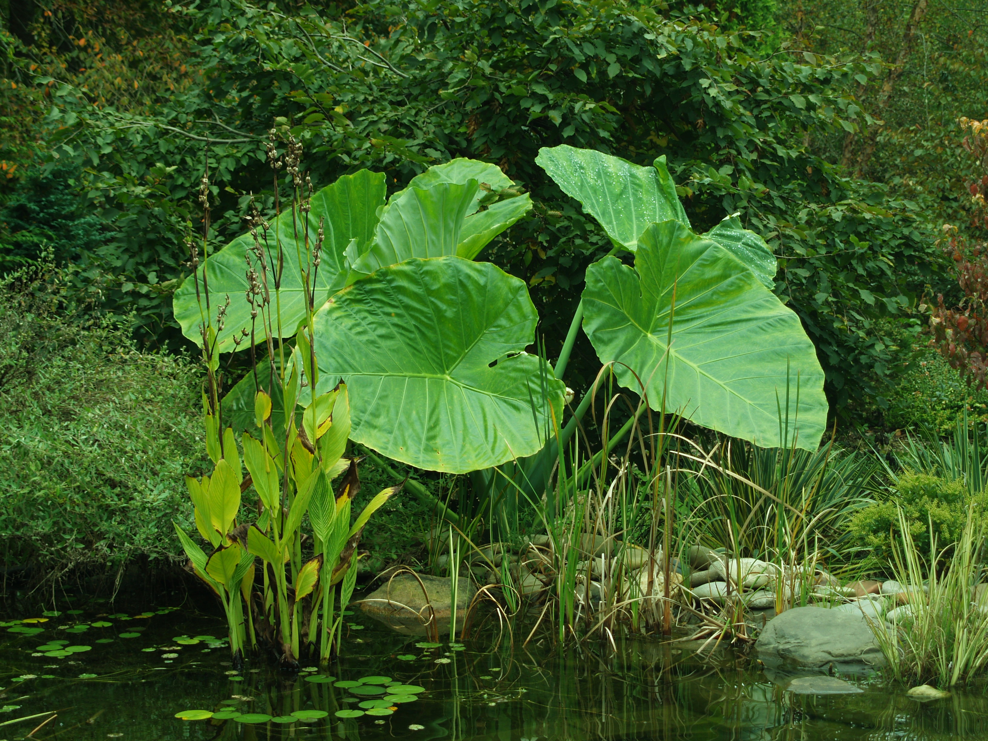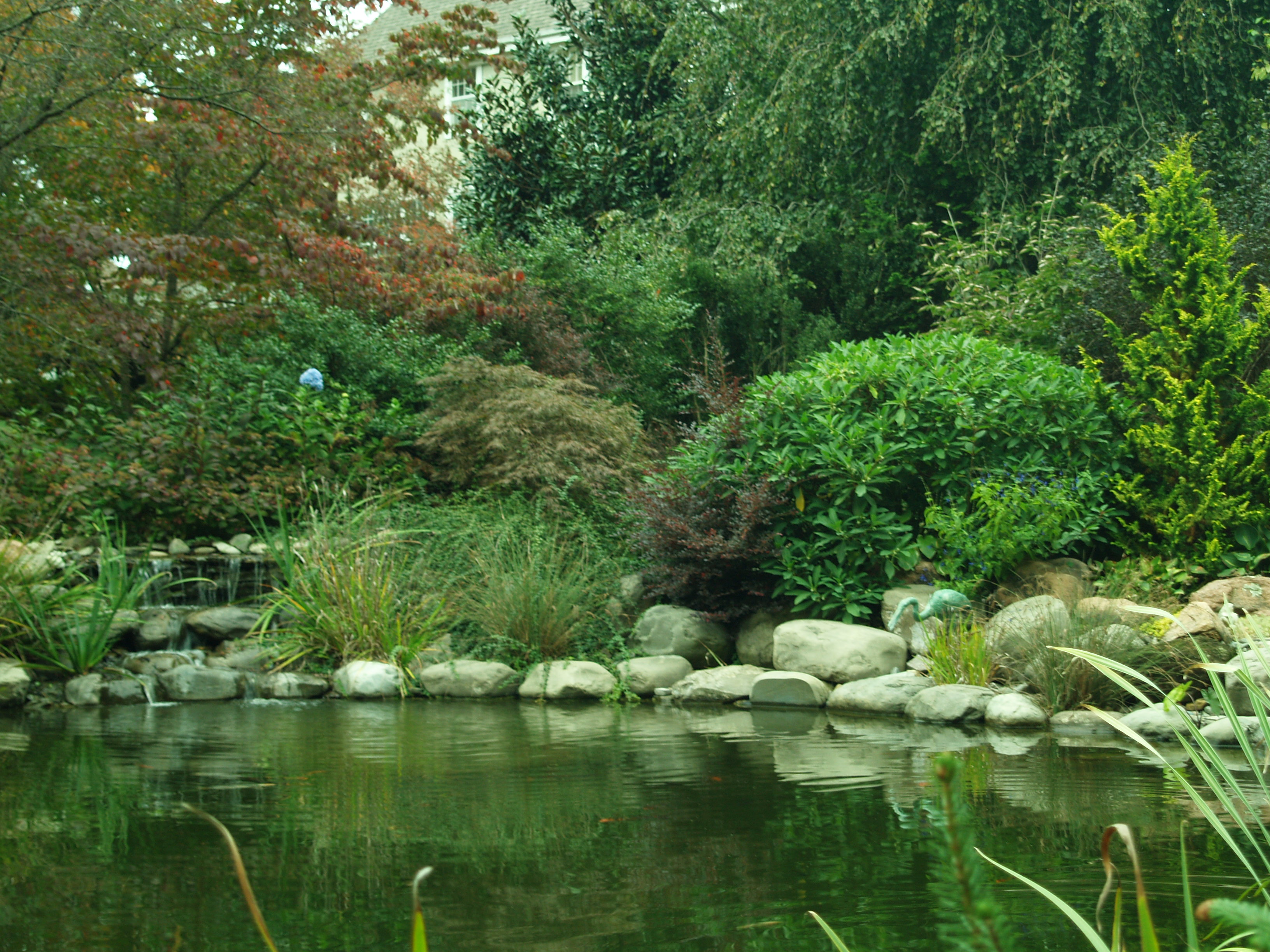 For a few years I battled a persistent heron that cleaned out koi and goldfish from the smaller ponds, so now all the fish are in the deep swimming pond. I began with ten of the the least expensive koi that I could find, and now that there are fifty or a hundred (who can count?) I’m certain there are no prize winners, but there’s an amazing diversity of color and patterns, and I can’t imagine rambling through the garden without a visit to feed the ever hungry fish.