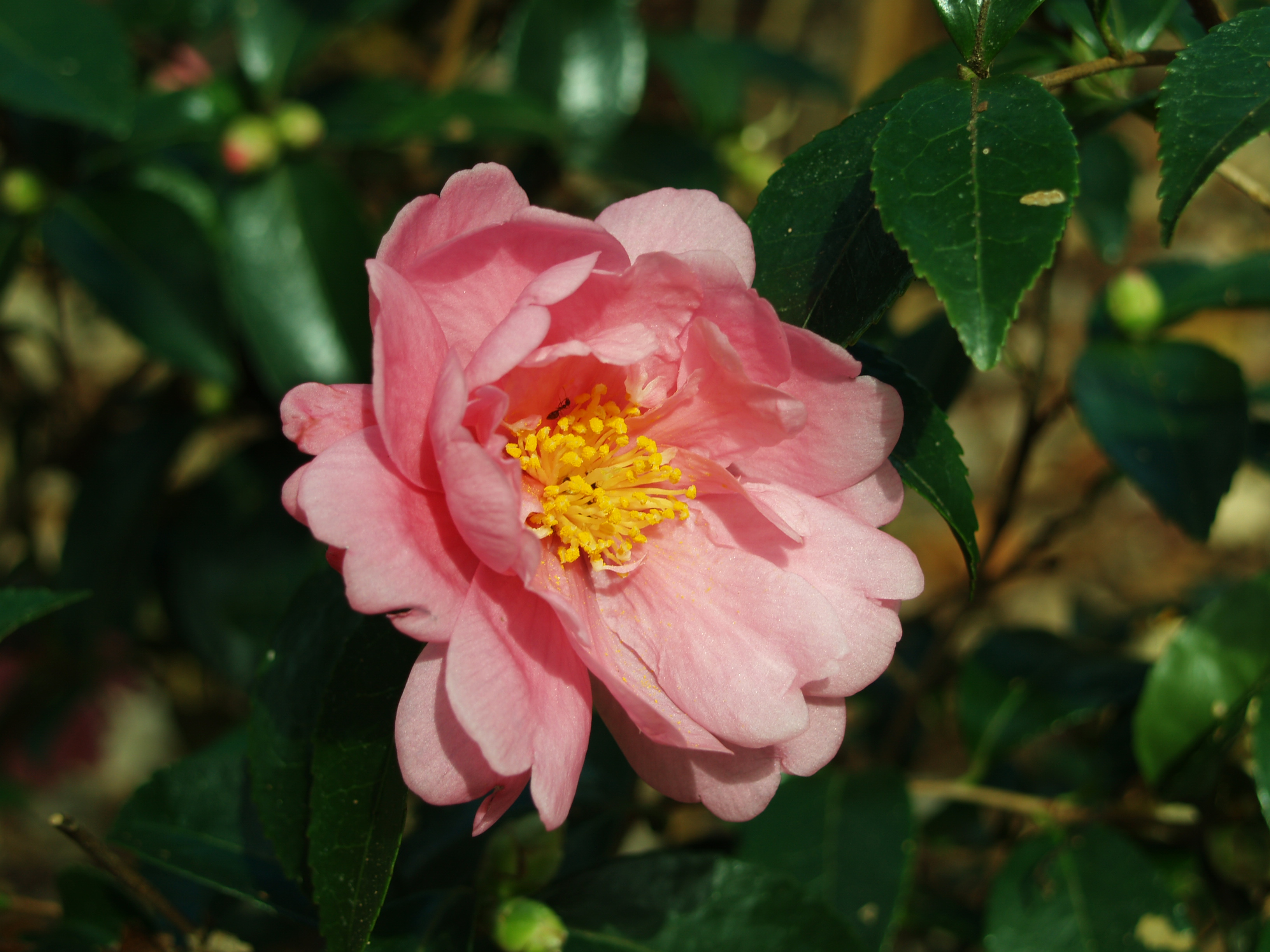 The late autumn flowering camellias continue to open a few buds at a time, though they have slowed in the cold over the past week. With warmer temperatures forecast I expect more flowers over the next week. ‘Winter’s Interlude’, ‘Winter’s Star’, and ‘Winter Snowman’ are hybrids that are more cold hardy than the earlier autumn flowering sasanqua camellias, and often there will be scattered blooms through December and January.