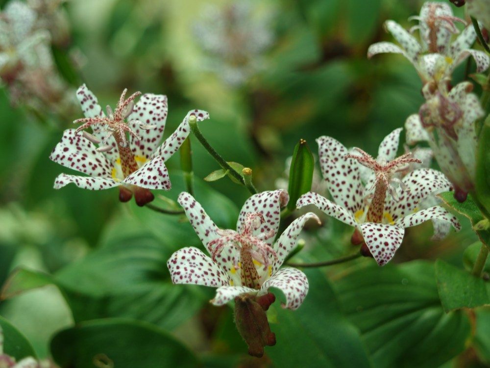 Most of the toad lilies (Tricyrtis) are past bloom, but a few were still going strong before the recent hard freeze, with more buds still to open that would flower for a few weeks longer if not for the cold night. The late flowers are abundant, but not showy in the manner of mums, asters, or pansies that are planted en masse to be seen while speeding down the highway. Instead, the individual flowers are spotted and finely detailed so that they are best enjoyed at close range. Toad lilies are well know to gardeners, but are not common in the typical neighborhood landscape.