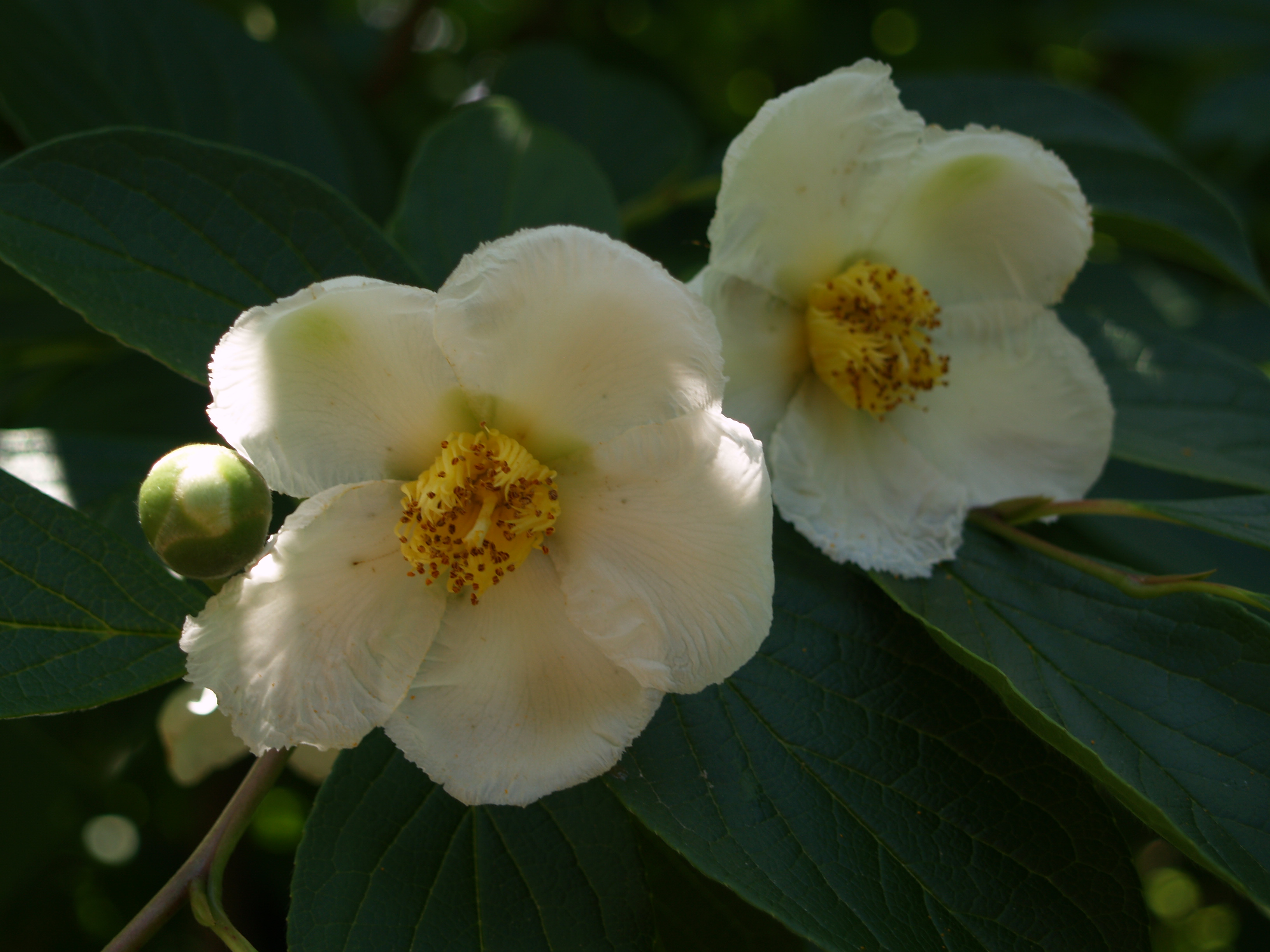 Now, enough of this negativity. The blooms of the Golden Rain are nice for about a week, and then you are fortunate to forget about it for the remainder of the year. Japanese stewartia (Stewartia pseudocamellia, above) is flowering at the same time, and the only negative comment I have for it is that it took several years after planting before it decided to get growing.