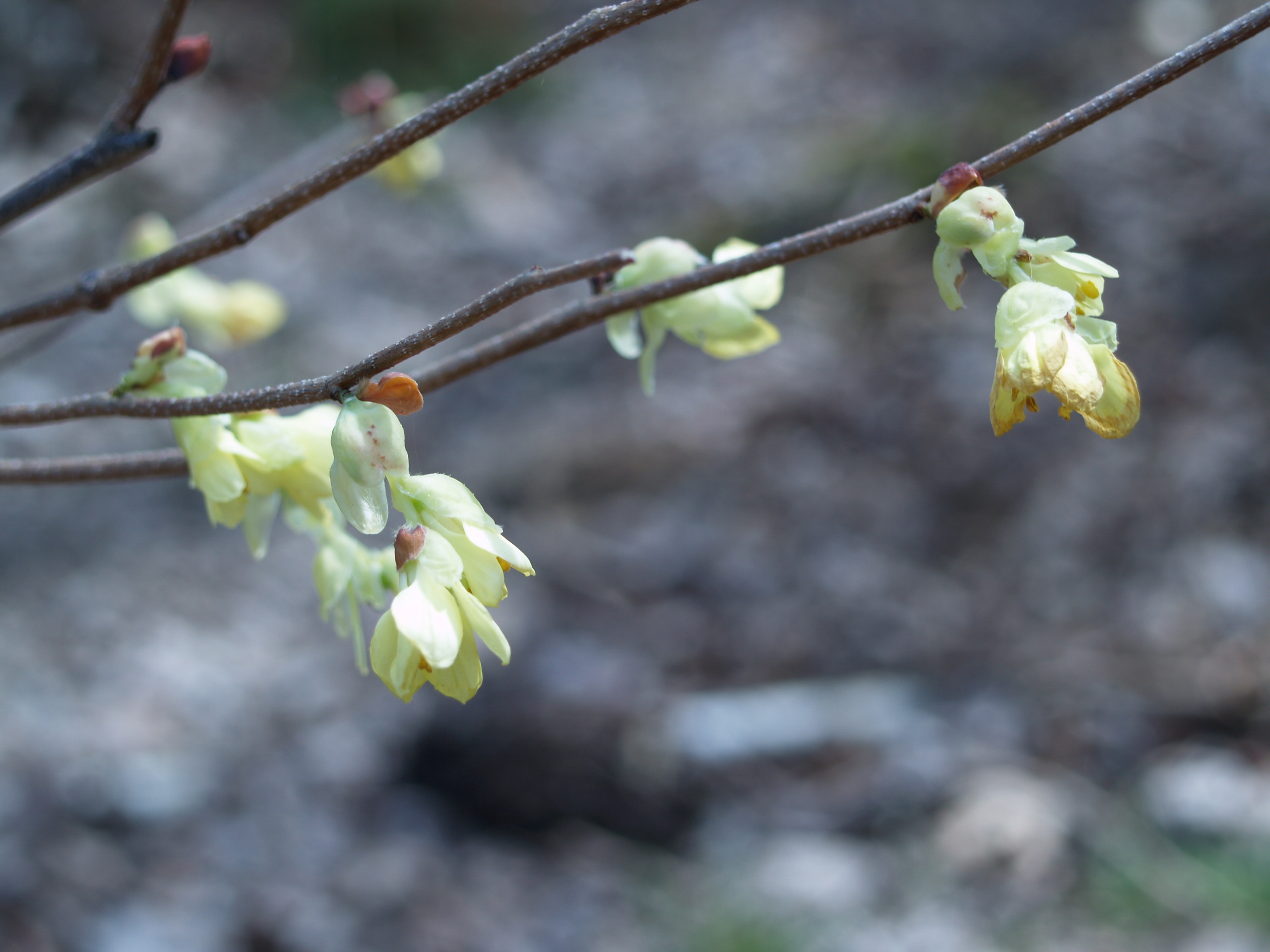When I became distracted in the past and failed to spray, deer nibbled almost every leaf of the black chokeberry, so if these native shrubs are to be successful they’ll require a bit of my attention. But, they’re lovely shrubs and they’ll tolerate the damp soil, so there seems little question it’s worth the effort. A small Buttercup winter hazel (Corylopsis pauciflora, below) planted a few feet away, and just at the edge of the dampness is managing well so far, though it would likely prefer a more well drained situation. This shrub was transplanted from bare root a few years ago, and it’s not surprising that it’s taken a few years to get growing. I’m pretty certain that it’s just high enough above the worst of the dampness to survive, unless the area continues to sink.