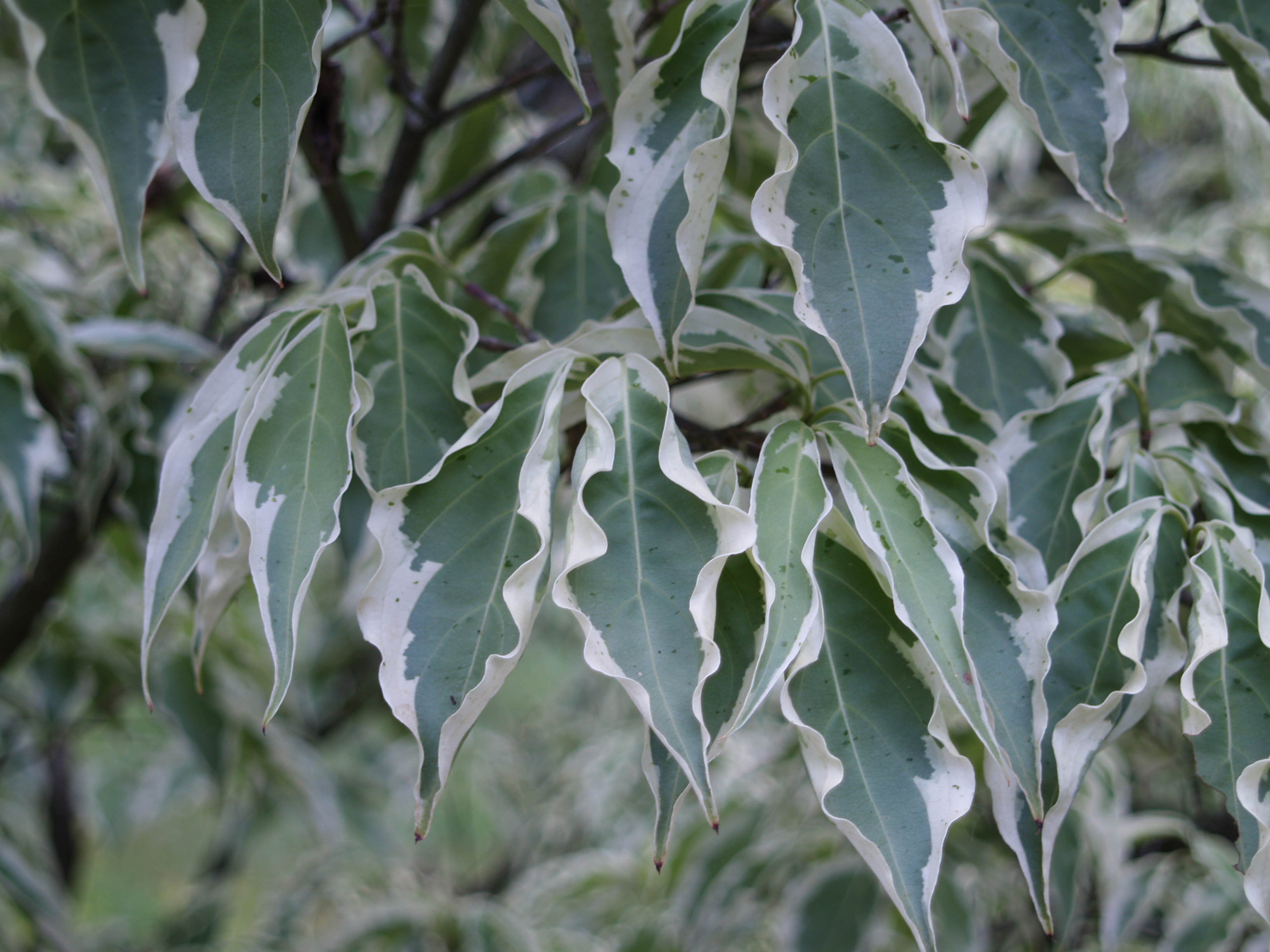 I’ve mentioned in recent years that the vigorous variegated Chinese dogwood ‘Samaritan’ (Cornus kousa ‘Samaritan’, above) has not flowered, and I suspected the reason was that it is partially shaded. The tree has grown tall and full, and from this I wouldn’t suspect that the shade was too deep, but I’ve had no other excuse for its lack of flowers. I’ve seen ‘Samaritan’ flowering in other gardens, so I didn’t figure this was a genetic shortcoming due to its breeding, and lack of sun seemed the only logical explanation.