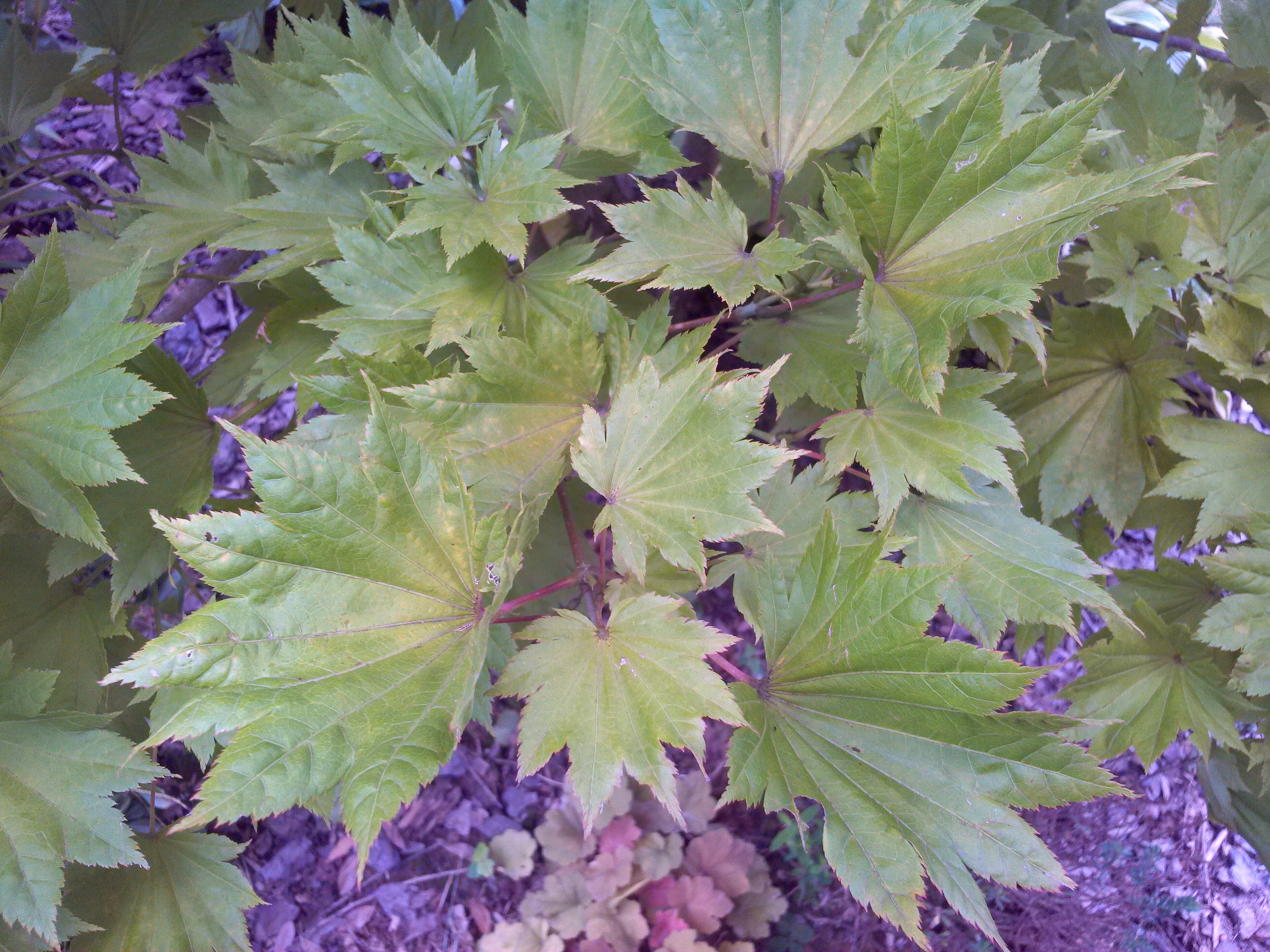 Many trees and shrubs in this garden are long established, and with deep roots they show little ill effect, even in the driest, hottest summers. The deep red of a few Japanese maples (Acer palmatum) will fade a bit in the heat, but ones that are partially shaded hardly show a hint of this.