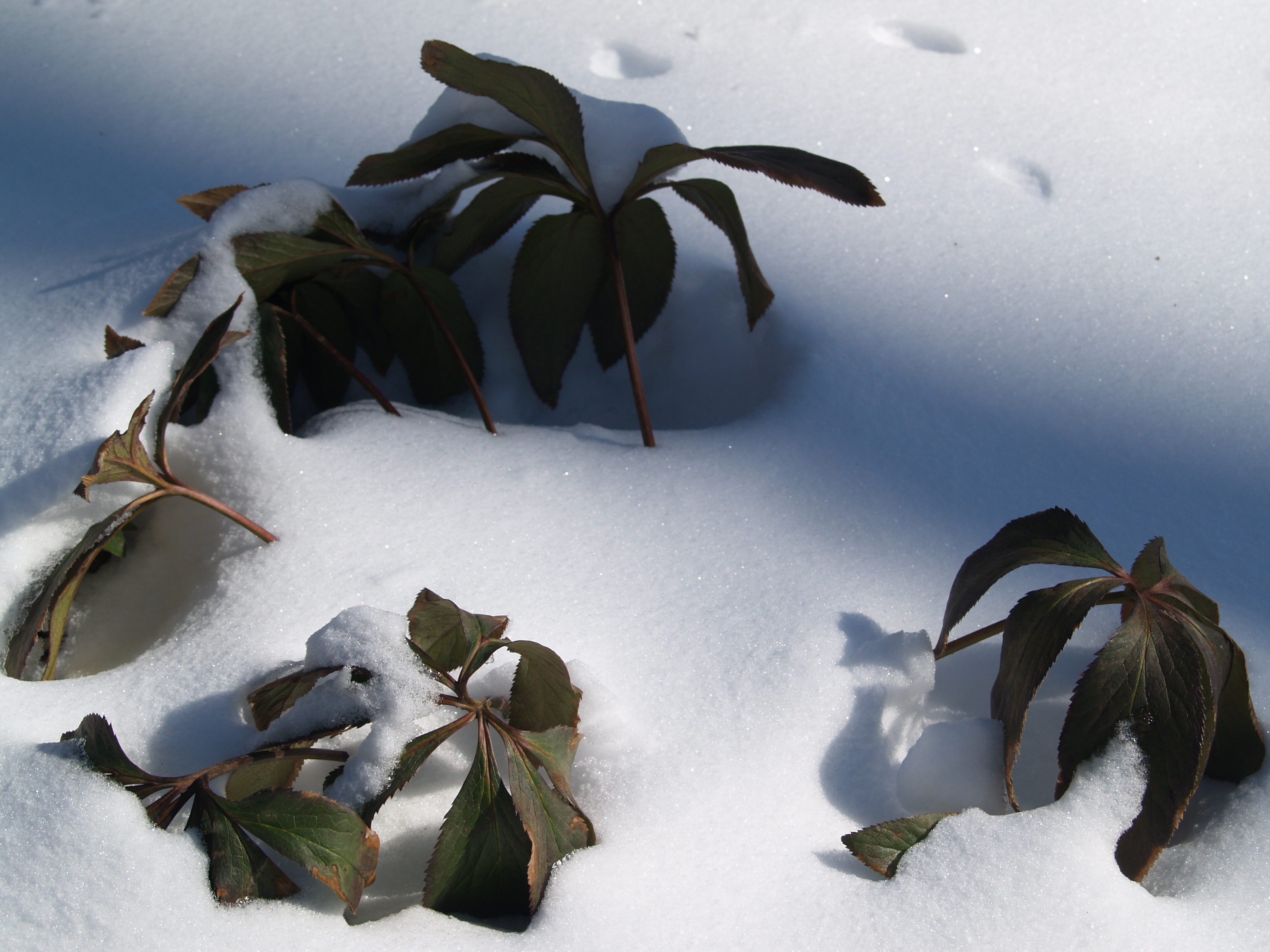 Not that this doesn’t happen frequently, and in fact hellebores were buried a year ago, and a few years before that by much deeper snow than this. Fortunately, this only delays seeing the blooms, which eventually emerge unscathed through the melting snow. Then, perhaps as a reward for the gardener’s patience, hellebores will typically begin flowering within a day or two due to the bright sun or warmer temperatures that melted the snow.