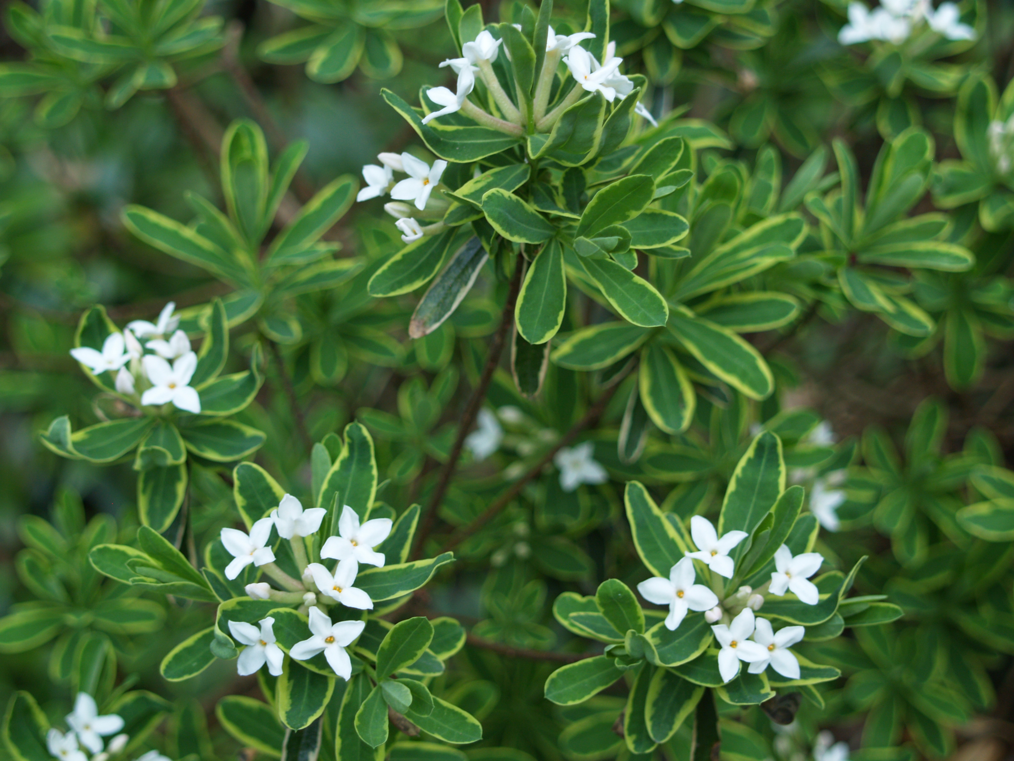 Certainly, I can smell the viburnums this afternoon, despite the breeze. Korean spice and Burkwood viburnums are flowering, with the tall, lanky Burkwood just coming into full bloom. The semi evergreen ‘Pragense’ will flower in a few days, and while its blooms are larger, they are not fragrant.