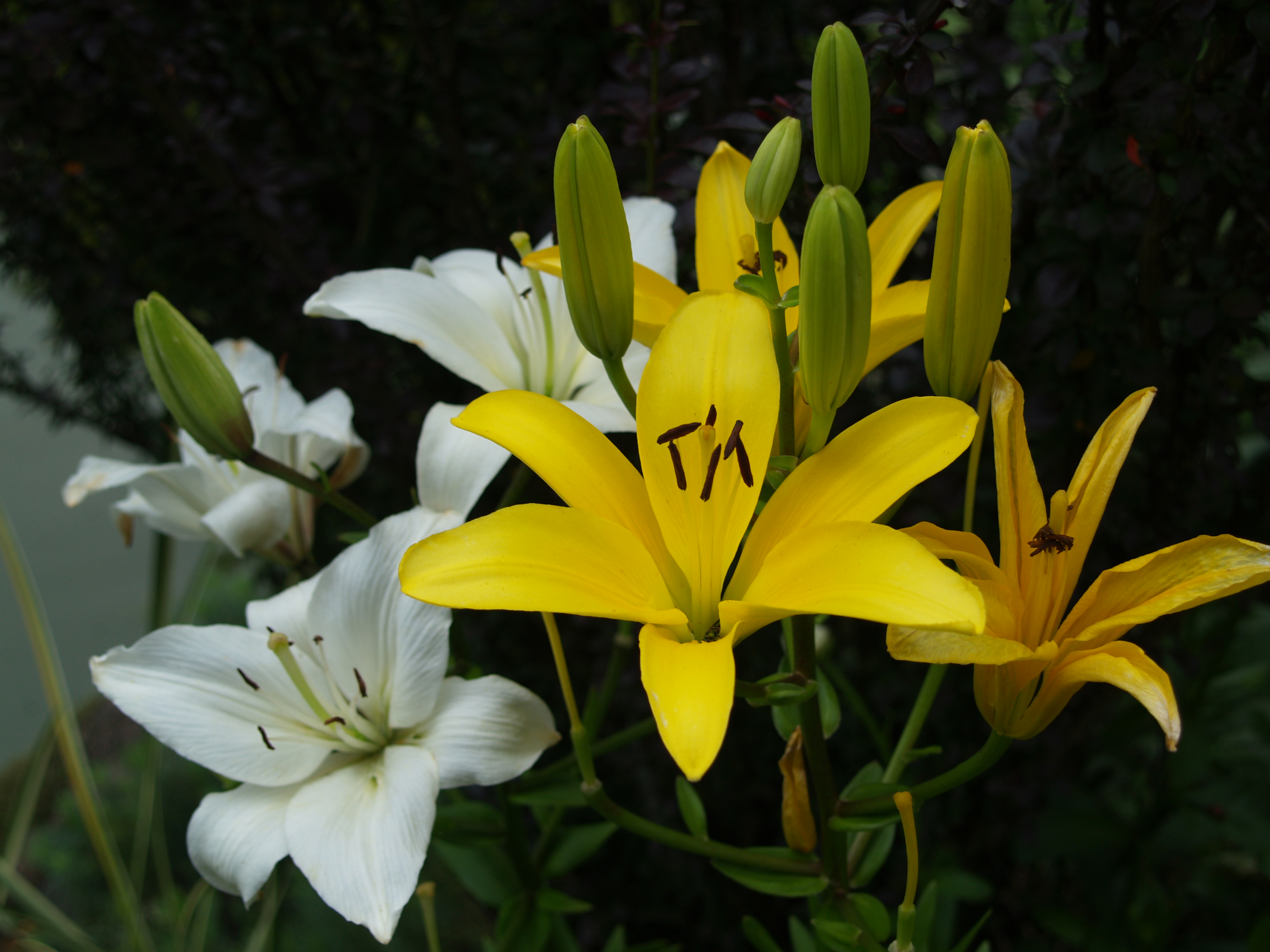 Asiatic lilies flower in late June, then stems are hidden by daisies that bloom through mid summer.