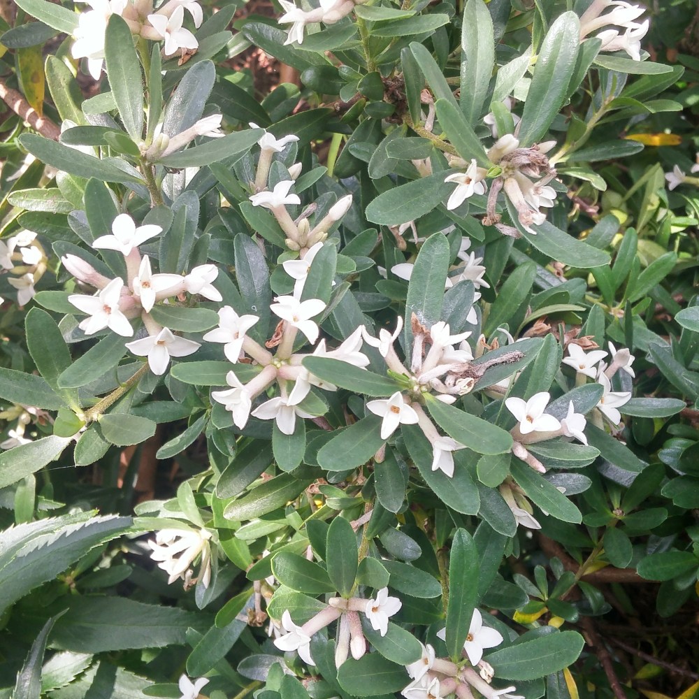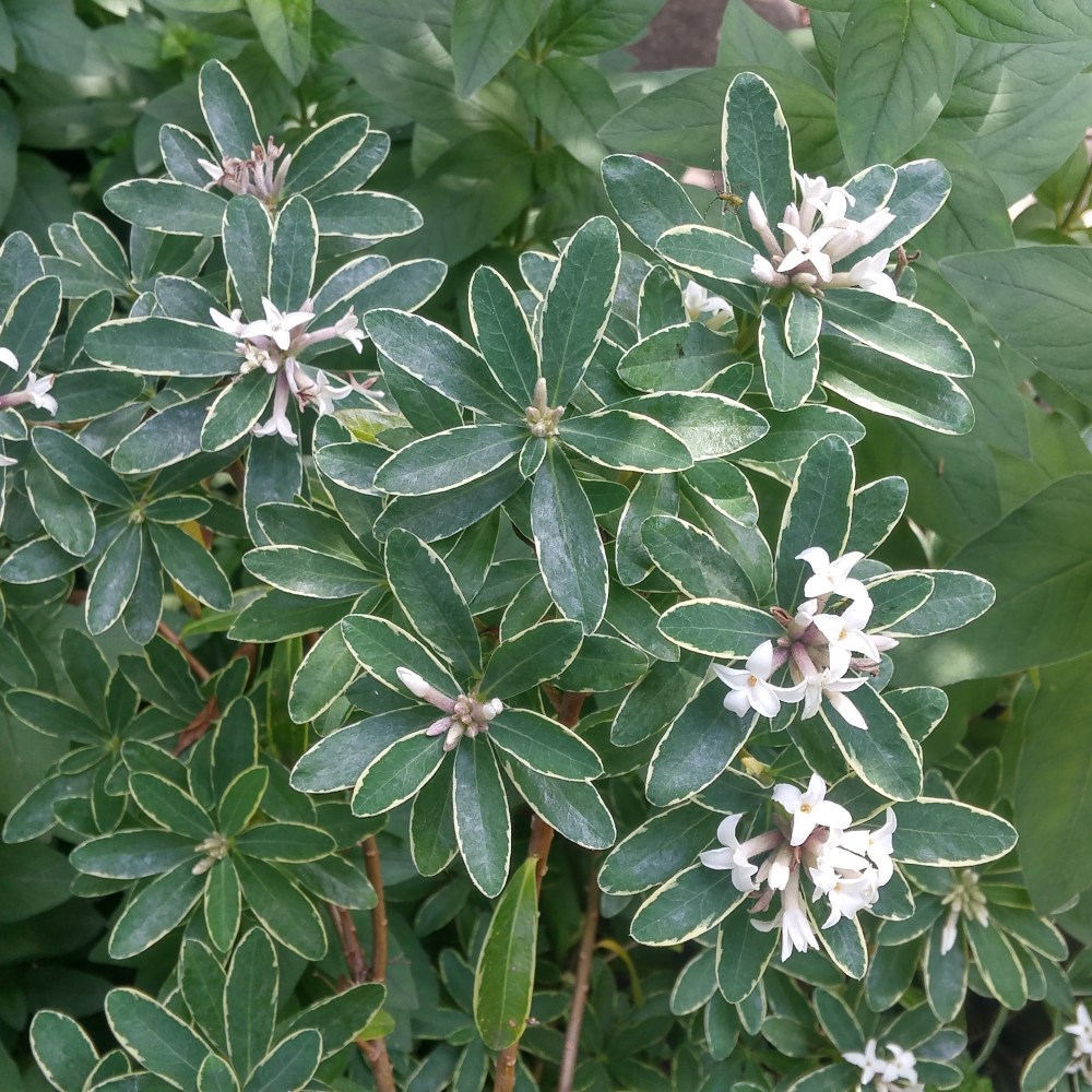 The hybrid daphnes ‘Summer Ice’ (Daphne x transatlantica ‘Summer Ice’,above) and ‘Eternal Fragrance’ (Daphne x transatlantica ‘Eternal Frangrance’, below) are into their third cycle of blooms since the first flowers a few days after freezes passed in mid March. The foliage of ‘Summer Ice’ is superior, but ‘Eternal Fragrance’ flowers more heavily and with greater frequency. Both are marvelous daphnes, and much easier than Winter daphne (Daphne odora) and ‘Carol Mackie’, which are wonderful plants but a little more particular about their circumstances. I’ve found that in this garden daphnes prefer part sun for best flowering through the heat of summer, but flowering is stunted in a bit too much shade.