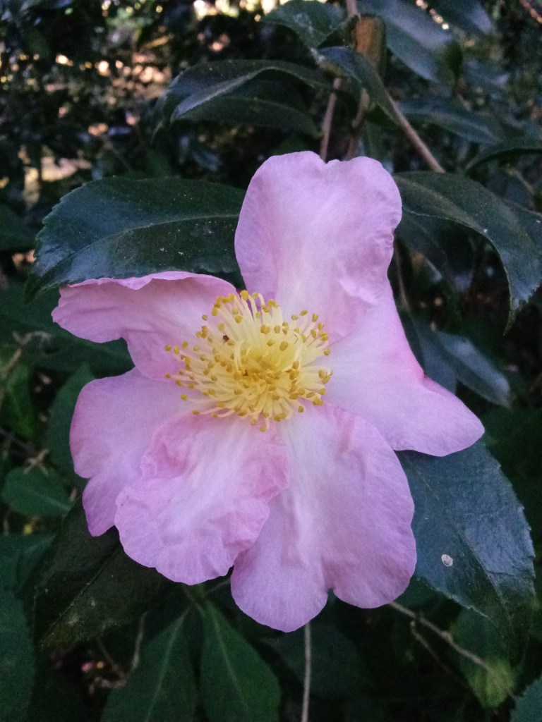There is some advantage that cold has been delayed. There are more blooms in the garden, with toad lilies and Peruvian lilies (Alstroemeria, above) continuing to flower, and camellias (Camellia ‘Winter’s Star’, below) and the coarse leafed Tatarian aster coming into bloom. Several toad lilies have flowered since early in August, and others will continue for several weeks, or until the first hard frost.