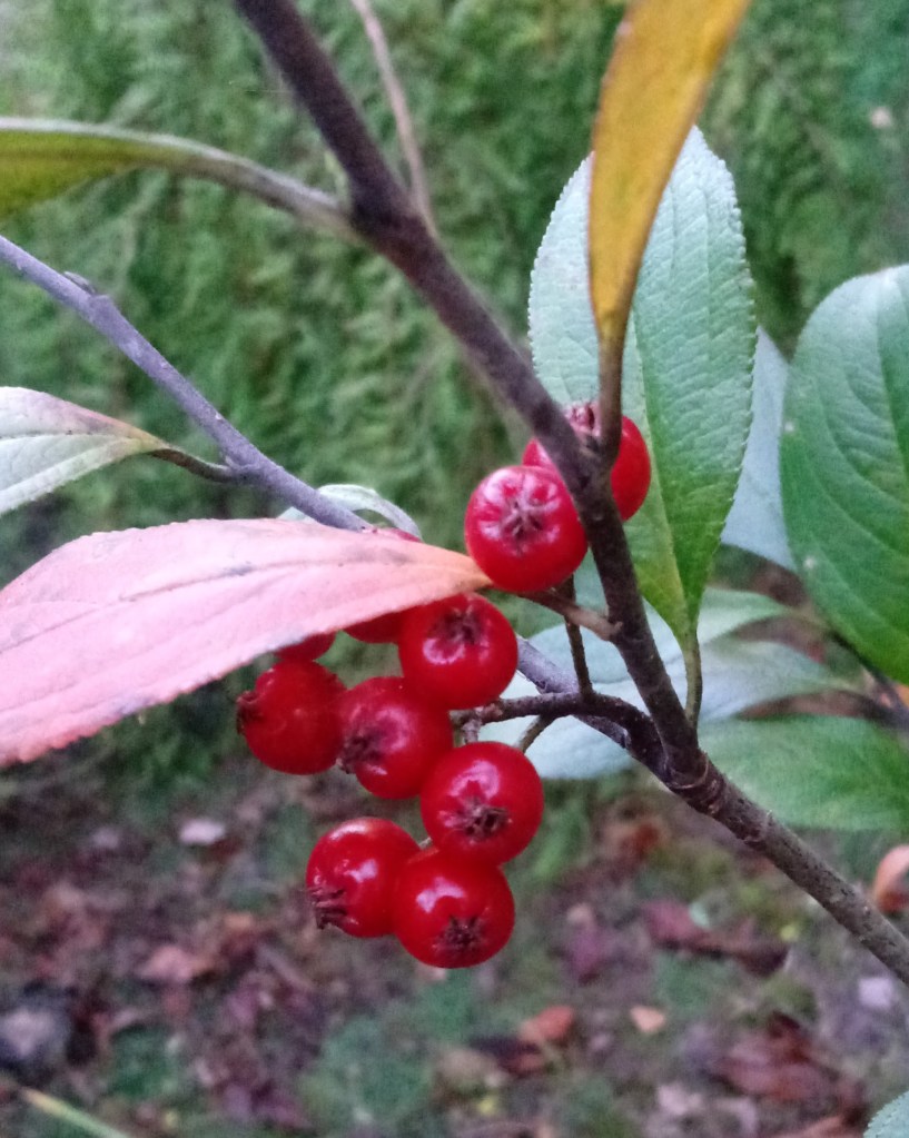 I notice that berries are coming along nicely. Beautyberries (Callicarpa) have been in color for a month, and now dogwood and red chokeberry (Aronia arbutifolia, above) berries are fully ripe. Several hollies have red berries, but others will not turn for several weeks.