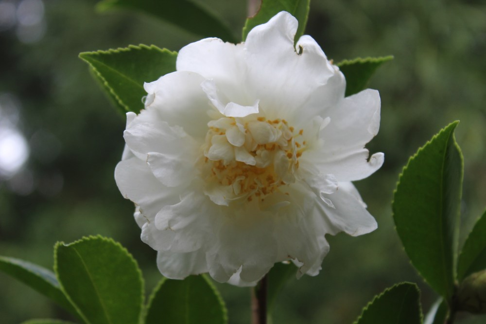 I was surprised earlier this year when a large fernspray cypress was removed, to find a tall camellia wedged between the cypress and an Umbrella pine. I hesitate to admit it, but finding plants that had long ago been forgotten is a likely sign that the garden could be over crowded. The area has been replanted with lower growing plants so that the camellia’s flowers can now be seen.