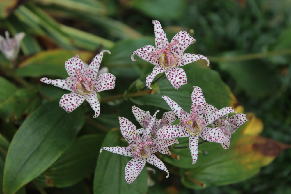 There are wonders to be seen any day in the garden, not only this garden, but in many, no matter the season. Certainly, there are a few to be excited about in early November, and not only colorful leaves. At the start of the month there are many more flowers than expected or typical, and for visitors who figure that there is some special treatment that yields late blooms, I can verify there is not. I can’t explain why Rankin jasmine (Gelsemium rankinii, below) is flowering, or why several toad lilies and reblooming azaleas have survived multiple frosts and thirty-one degrees and continue to bloom.