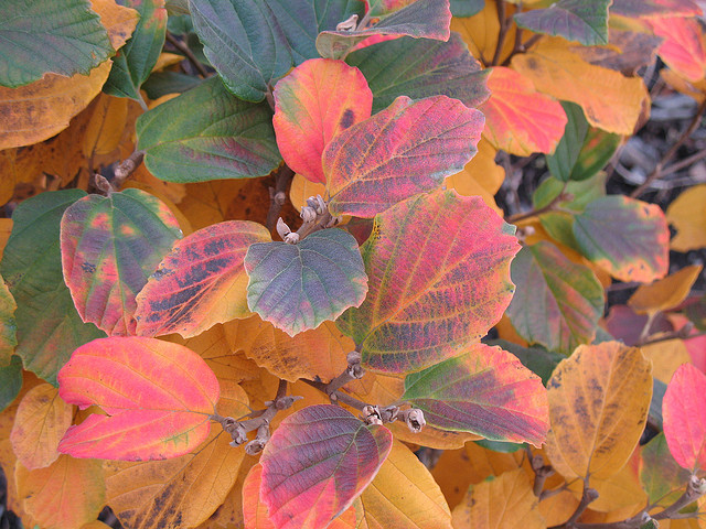 What brought this to mind, I think, is the succession of blooms that begins in January with the Vernal witch hazels, and then to various hybrids February into March. I’ve been thinking that the related winter hazel (Corylopsis spicata ‘Aurea’) should be moved out of the damp ground where it clearly does not thrive, and I guess this got me thinking that I’ve wasted the also related fothergilla where it cannot be appreciated.